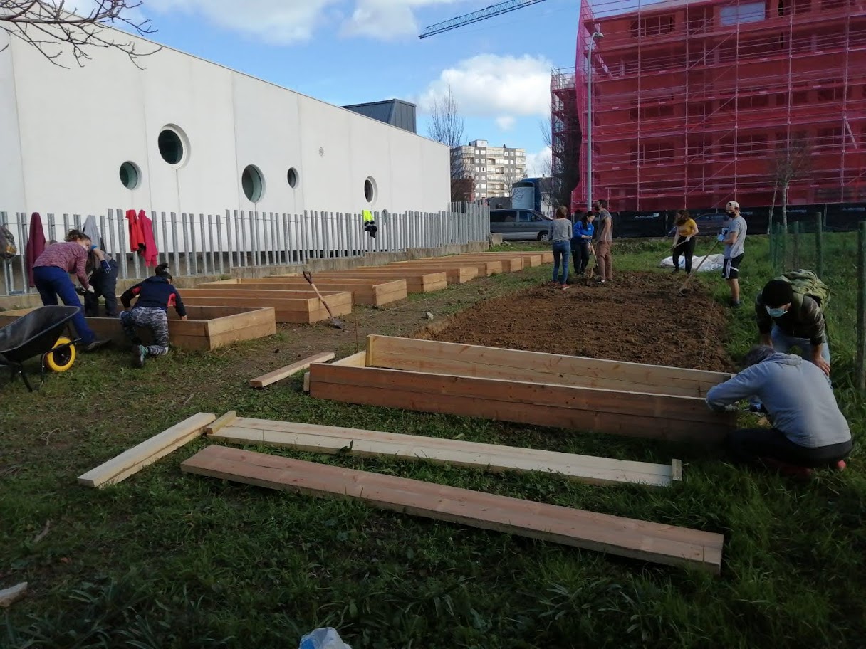 Our garden is not only just a land where vegetables are put to grow, but an organised space with wooden boxes which have a special system of different layers for the plants to grow better. As well this is just not only a garden - it is also a educational spot to develop workshops and events: yoga, basics of agriculture, drawing, language tandems, cultural nights, concerts etc. Of course, right now with the coronavirus we have to respect the restrictions and move slow, but in the future this community garden converts into something more than just a land where vegetables grow. It will be a symbol for teamwork, integration, awareness building, innovation, initiative etc. As in Ferrol here is a lot of problems with the eucalypt tree what conquers the local native trees, we want to start planting here in our urban seeds of local traditional Galician forest trees (oak, birch, chestnut etc), grow them and then replant into spots where trees are missing.