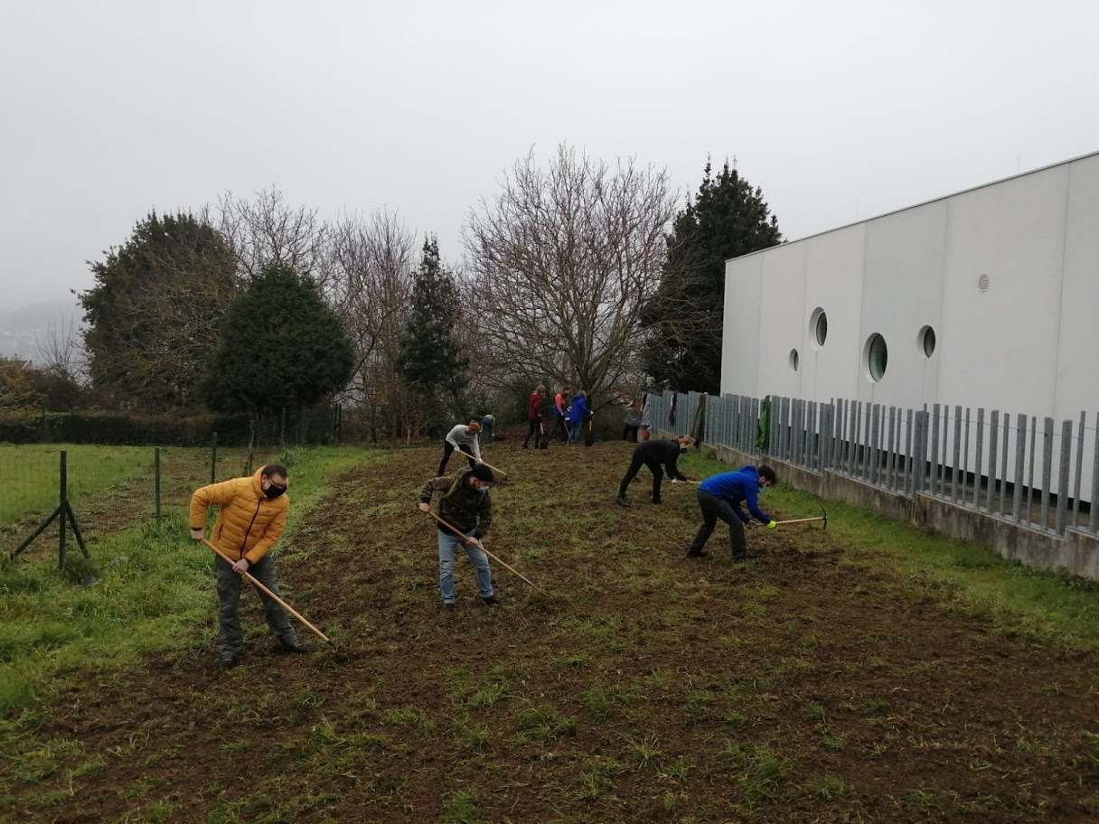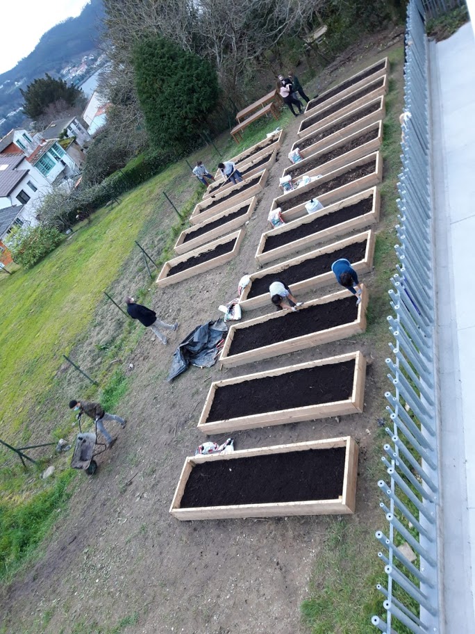 We started working with the parcel in autumn 2020, always taking in consideration the restrictions of COVID-19.The two main initiators are organisation of Xeracion (work with international projects, cultural activities ) and neighbour association of Canido (work with locals in the Canido district). During the project 4 other organisations joined: Movilidad Humana (work with migrants, mainly from South America); AECC (work with people with cancer); Colegio San Rosendo (local school); Caritas (work with people with social/economical challenges). As there were no previous knowledge about gardening , our meetings were assisted by Maria - agricultural consultant giving out professional advice. From the period of October 2020 we had constant weekly meetings to work in the garden: cut the wild herbs, branches, cultivate land, make it even, chop wood, create different soil layers for the parcels. In the beginning of April we planted the first seeds.