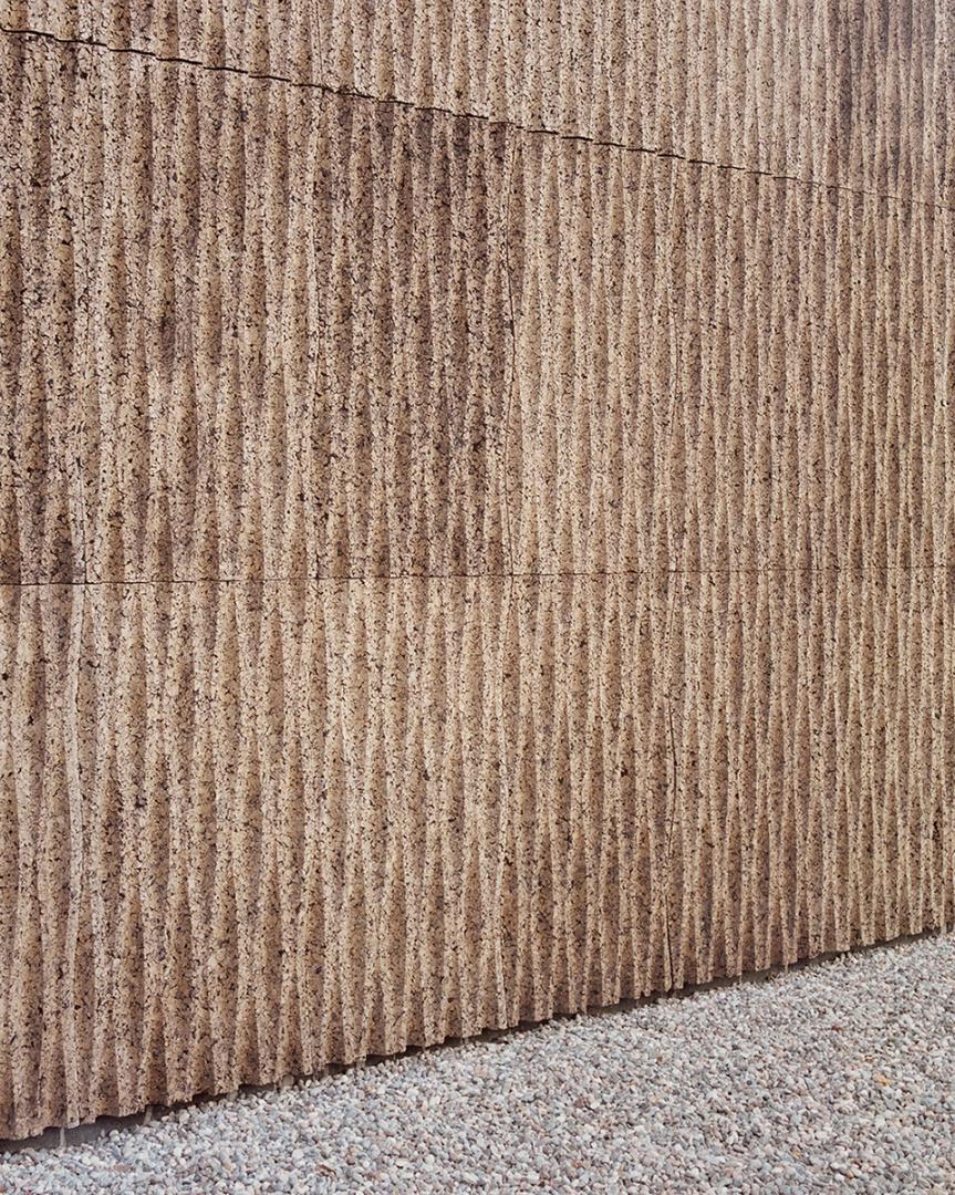 The treatment of the cork panels is just as innovative: pantographed in 3D, the slabs of this matter, which is commonly considered a “poor” one, turn into finely decorated surfaces.