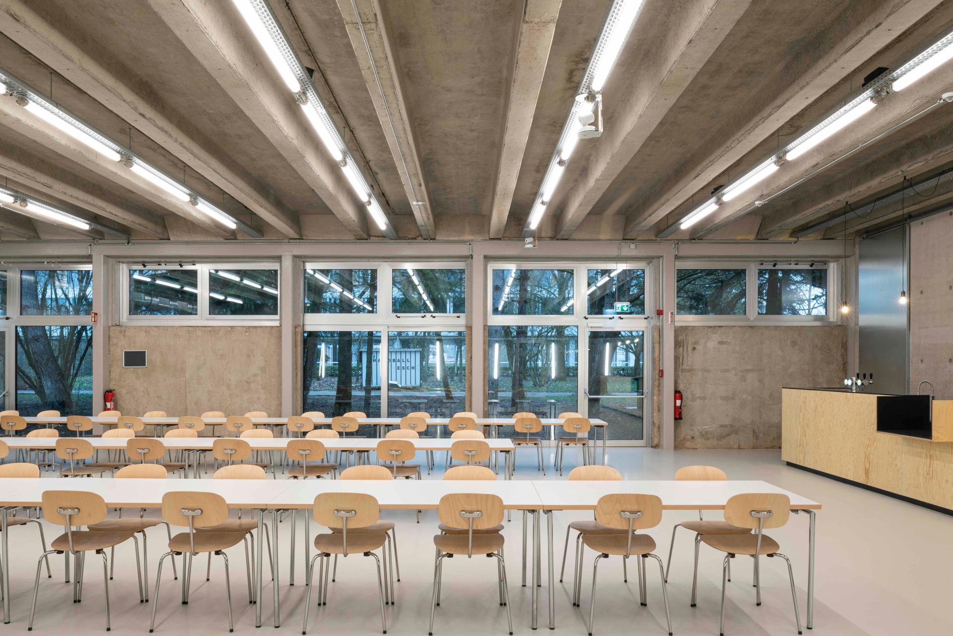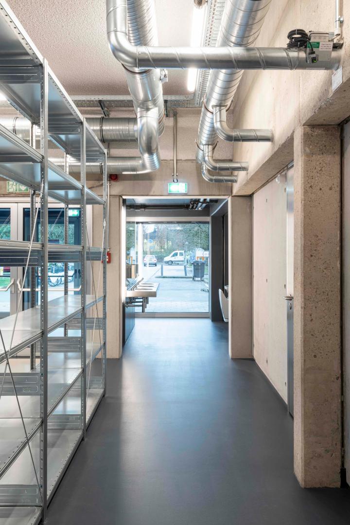 The Poly is the multifunctional heart of the sports hall; it hosts as much club and team meetings as neighborhood- and political gatherings. Its spatial expression is deliberately neutral yet honest.