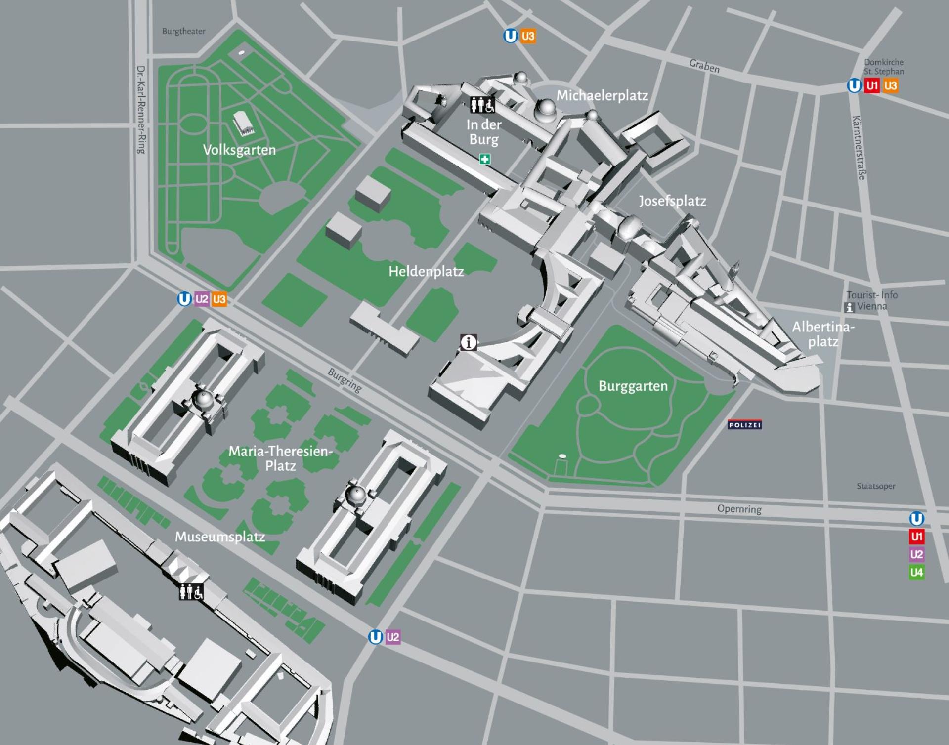 The oldest parts of Imperial Palace Vienna (IPV) date back to 1240 and have been enlarged and improved over almost 800 years. Been residence for archdukes and emperors of Austria ever since IPV became more and more important for Austria and Europe. This culminated in the Viennese Congress 1814/15 redesigning Europe after Napoleon’s reign. After termination of the Austrian-Hungarian Empire IPV was turned into residency for president and government of the republic. Nowadays IPV is home for 16 museums, containing 61 collections, the national library, Lipizzaner horses, 500 butterflies and uncounted bees, plants and romantic corners. Businesses and service organisations thrive here and about 25 million visitors enjoy the flair of the largest coherent secular historic building complex in Europe.