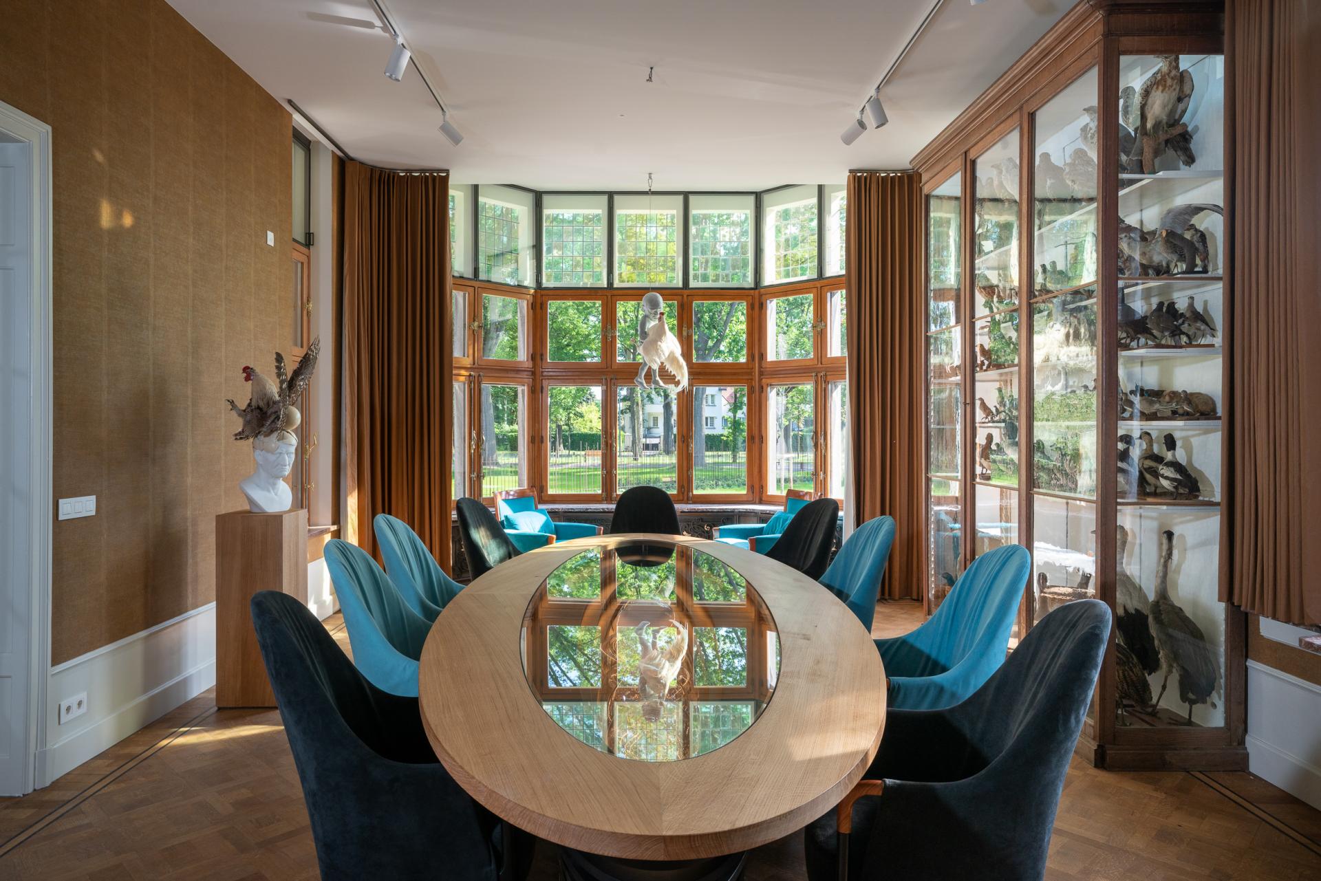 LABIOMISTA also integrates different architectural highlights and heritage elements. The Ark, the entrance to the park and The Battery, Vanmechelen’s studio, are built by Swiss architect Mario Botta. Both buildings resonate in their simplicity and are raised in the same black stone, a reference to the location’s history as a coal mining site. The Battery contains an extraordinary greenhouse (The Looking Glass) and a huge eagle aviary. Villa OpUnDi dates from 1925. Listed as a monument, it exemplifies an eclectic-historical style with features of Mosan Renaissance. Team van Meer architects & co. restored the interior. Furniture and installations are by Vanmechelen. LabOvo, the pavilion in the Cosmopolitan Culture Park is designed by Belgian-Spanish architecture firm Van Belle & Medina Architects. The Cosmopolitan Culture Park was designed by BURO Landschap, a Belgian landscape planning and urban design firm. The animals in the park, which play an essential inspirational role in the artist’s work, represent the diversity that typifies our world. They roam freely through most of the compounds, allowing them to develop their own hierarchical structures and natural ecosystems