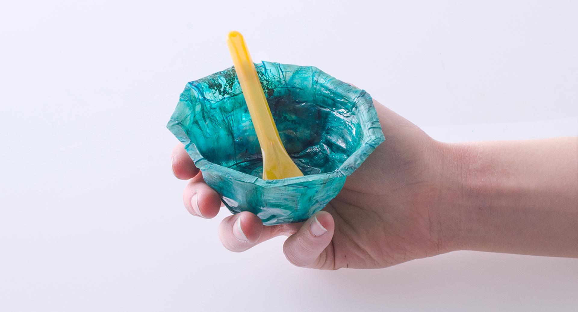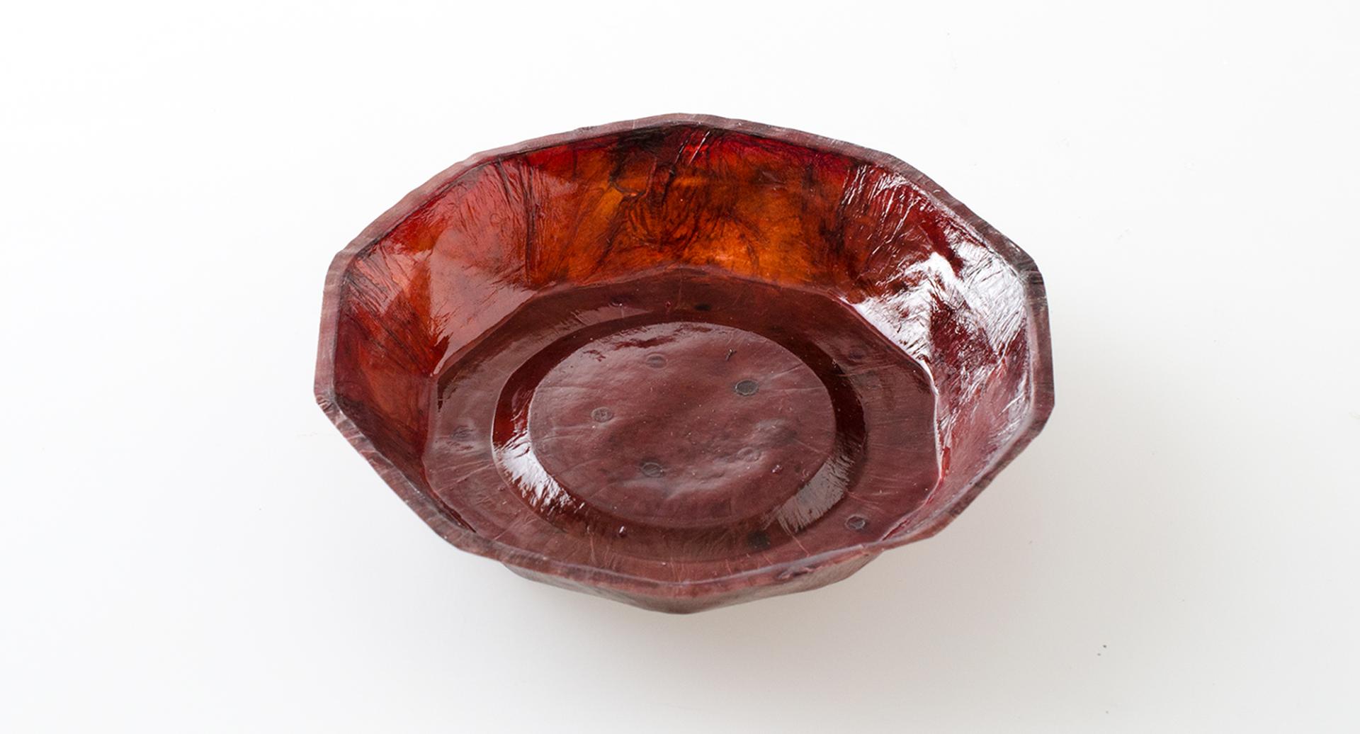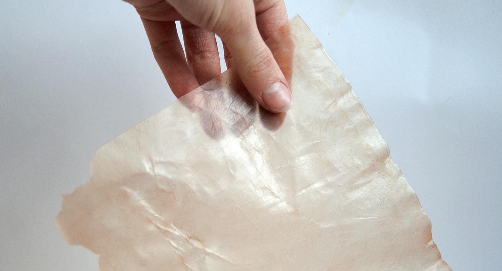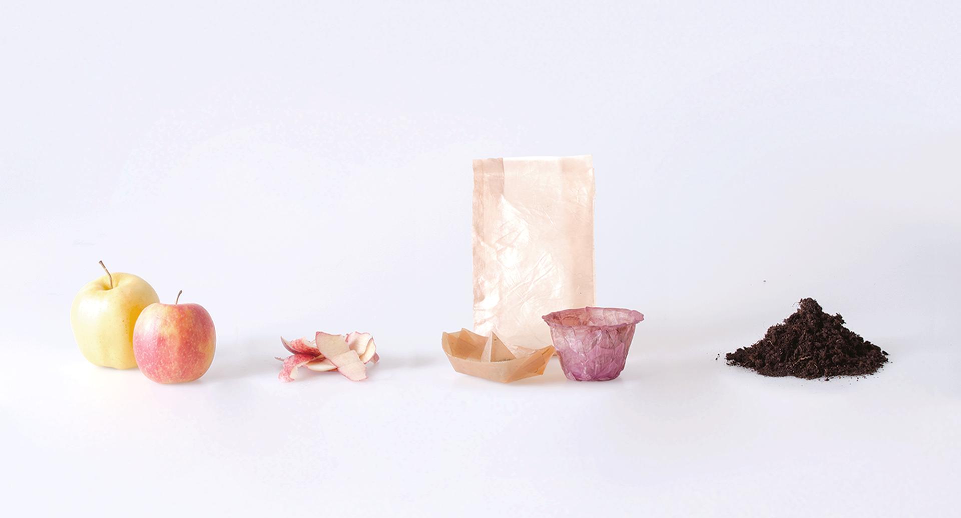 MC is a material with unique and varied qualities. Being characterized by microfibers it has valuable mechanical and aesthetical qualities. As the cultivation is water-based, the colour it takes mostly depends on the nourishing source during the fermentation process: MC grown from apple scraps acquires an orange to brownish colour while, when it is obtained from beetroot scraps broth is vividly purple. However, more color possibilities can be achieved by using pigments in post-processing. In InnoCell purification techniques were investigated to depigment MC with the aim of opening further aesthetic opportunities and structural characteristics. When MC is dried it appears translucent with a tactility that ranges from rigid to smooth and flexible, resembling a hybrid material between leather and plastic. MC turned into foam can also have pleasant shades and present itself as smooth and crunchy. In addition, MC shows a very effective capacity to acquire the texture of the surface on which it dries. Diverse three-dimensional shapes can be achieved through folding two-dimensional surfaces and with cold/hot molding and foam molding. MC substances have a visual and tactile organic and natural feel which characteristics can be seen as a communicative quality that can express naturality and compostability suggesting to the user how to dispose of them efficiently. Implemented MC packaging could be crafted locally to package or contain local foods made potentially with their scraps creating a strong relation between content and container while enhancing territorial bonds. Also non-food packaging would as well communicate the producer commitment to sustainable aims and values. MC materials would be completely compostable lending themself to be directly used as a fertilizer being composted or simply dispersed in the garden.