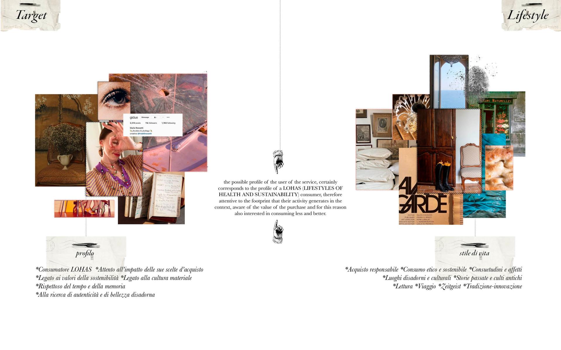 The possible user of the service corresponds to a LOHAS (Lifestyle of Health and Sustainability) consumer, who is therefore attentive to the footprint that his or her activity generates in the context, aware of the value of the purchase and therefore also interested in consuming less and better.