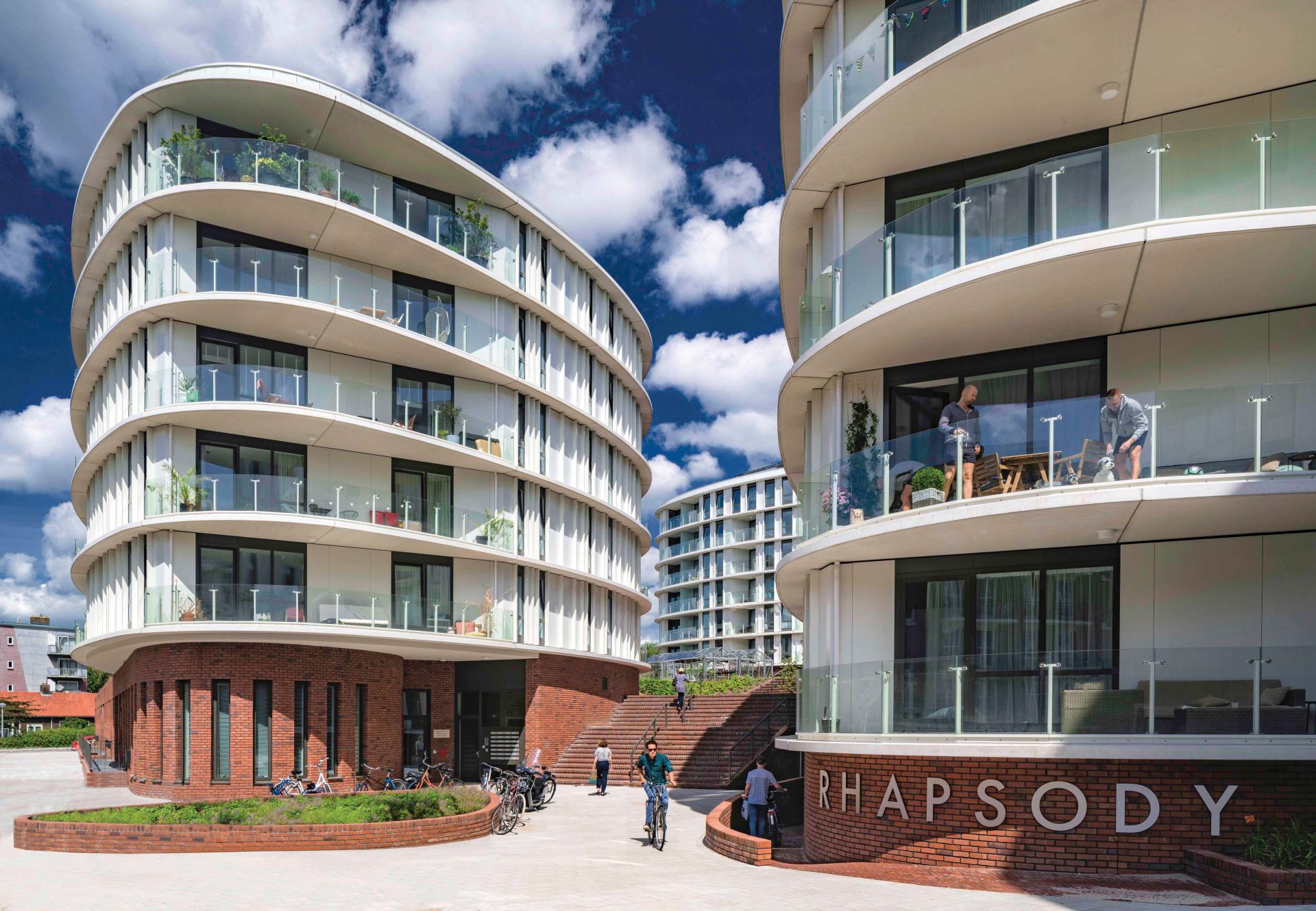1. Specific design solutions for sites previously labelled as unsuitable to live in come into the picture, which are often situated close to highways, and train stations. Rhapsody, a high-density urban residential development, delivers a green oasis – in a formerly deprived area on a noisy highway plot.