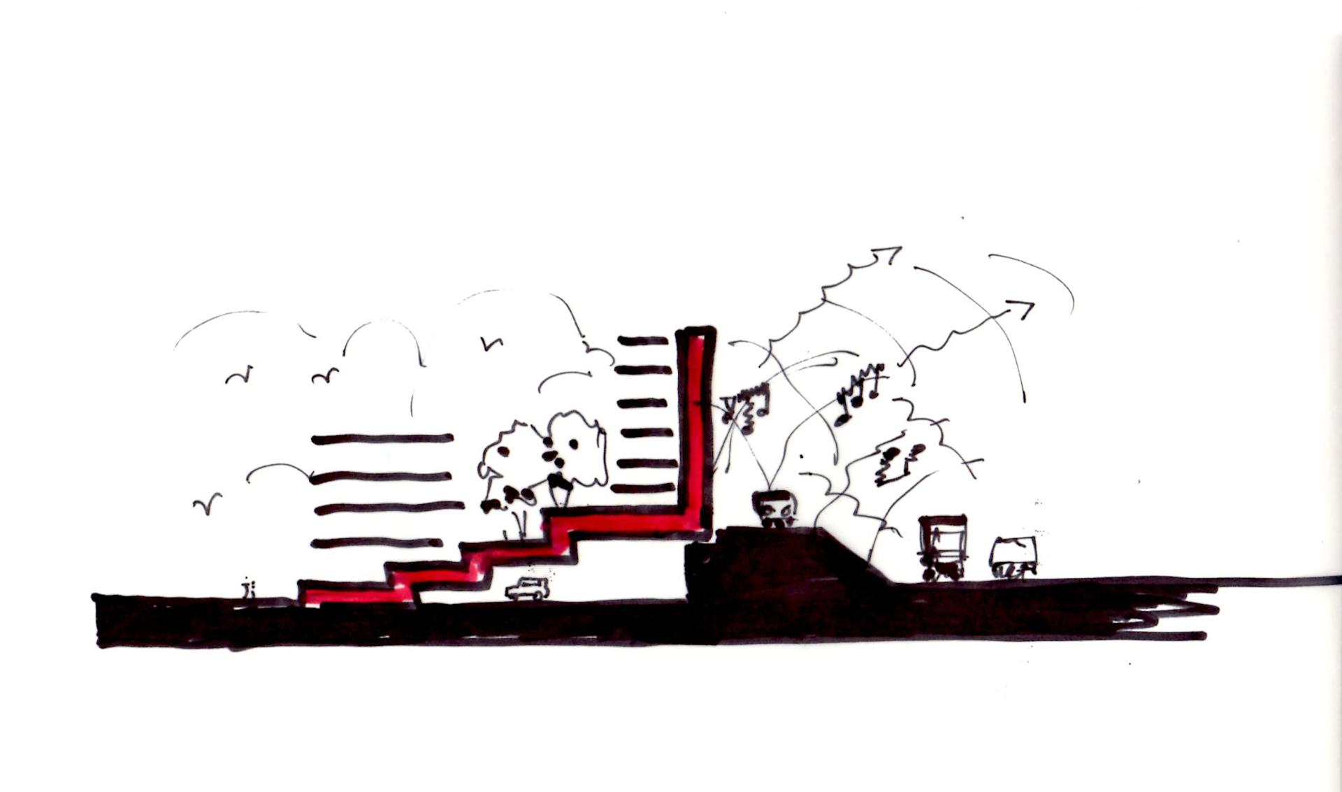 Rhapsody is a high density development (fsi 4) that marries strict requirements in regard to water management, energy performance, and noise and air pollution with rigid financial constraints: a modest budget to guarantee affordable rents. The project consists of 239 rental apartments, 196 underground parking places, and 400 m2 of commercial space.