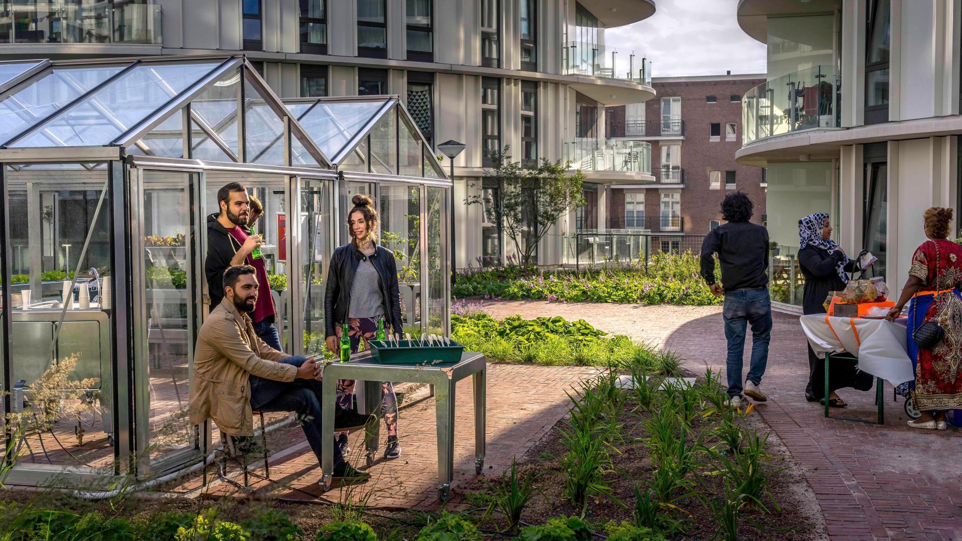 During the design and construction stages local residents always had a place to go to called ‘The Anchorage’. What used to be the meeting place in the middle of the site initially became three cabins next to the contractor’s offices. These were later replaced with a greenhouse in the centre of the new development, right between the apartment buildings. The Anchorage was not just a place to get together, but the residents were also involved in all sorts of activities (trading clothes, after-school club, cooking for one another). These activities were organized by a local artists collective called Cascoland. Rhapsody’s developing team ensured that all stakeholders remained committed to The Anchorage and provided funding that continues until today.