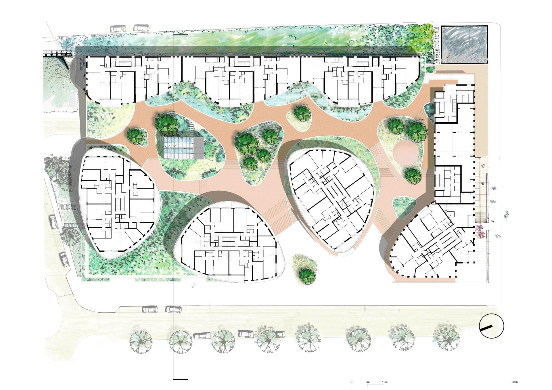 ‘Rhapsody in West’ proves that urban densification can be attractive and sustainable, even when facing economic and environmental constraints. The project is innovative and sustainable. Resident participation in this formally deprived area generated wide support for the project. The design creates an inviting public urban communal space with water and greenery, that solves noise and air pollution issues and reduces energy demands.