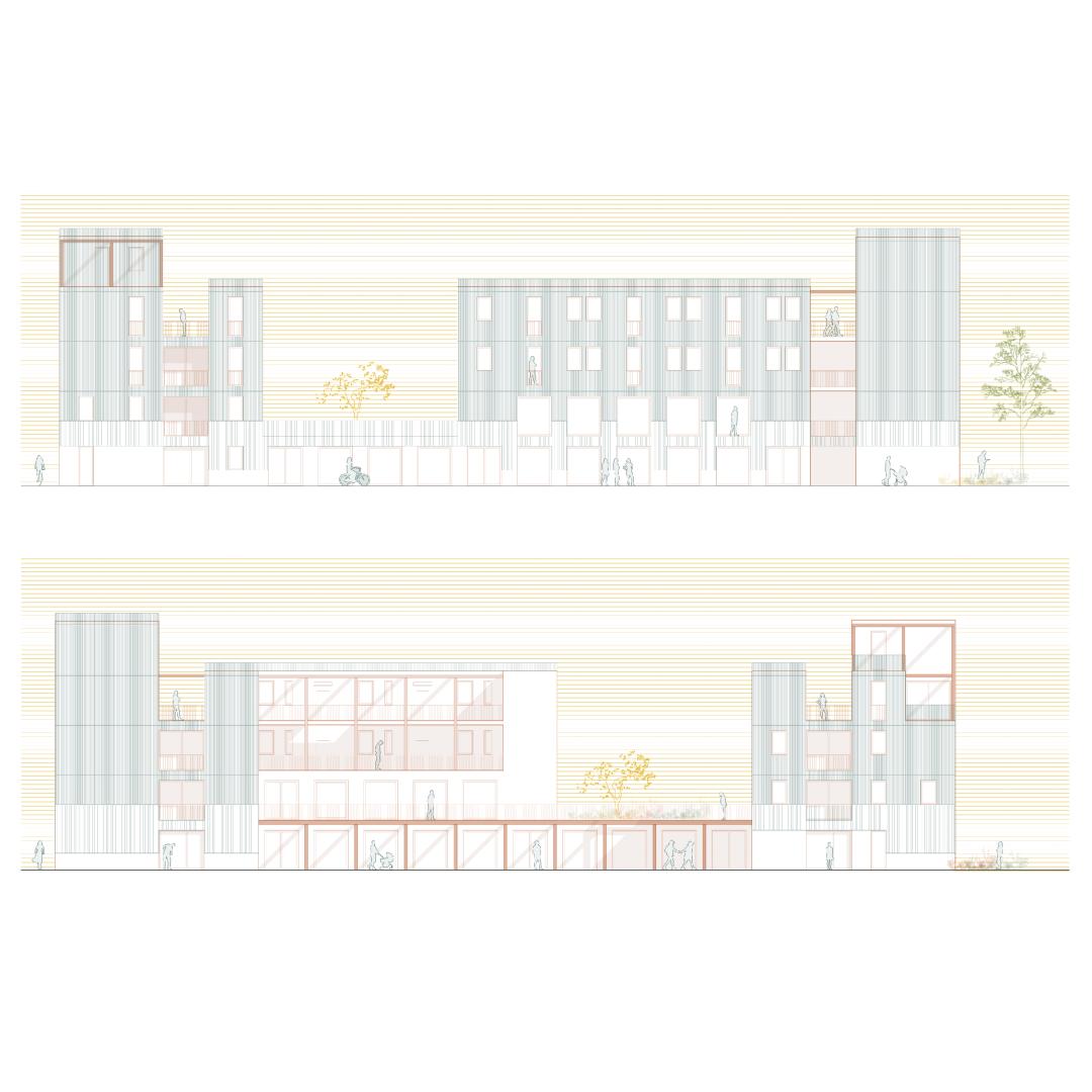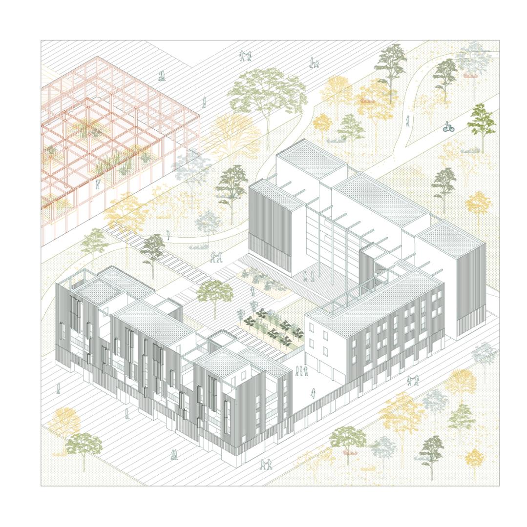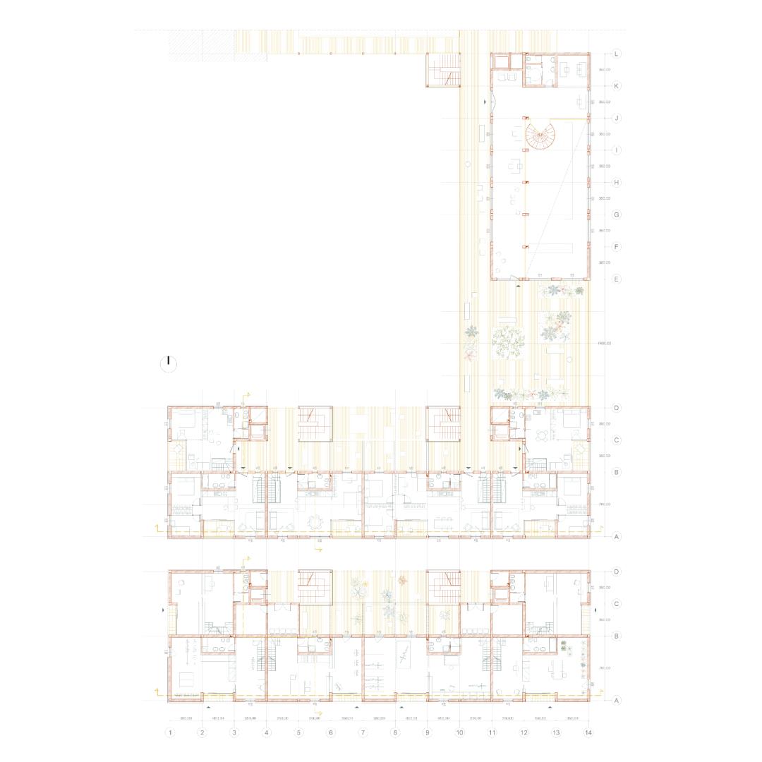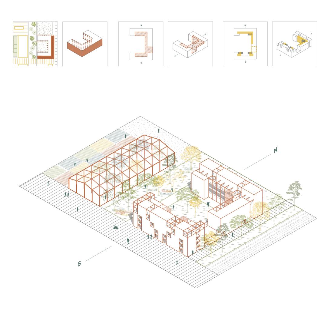 From the point of view of inclusion, the project represents a rather successful example: the fact of proposing different solutions for most professional categories means that a heterogeneous community of people is created and live in the same place, promoting a life based on different experiences, including the commitment in the maintenance and cultivation of the common greenhouse/orchards or getting engaged in the sustainable lifestyle of the M.A.I.S. project. Furthermore, the position within the attractive pole of the M.A.I.S. it allows you to interact with all the active parts of the system, the workers of the agricultural fields, but also the young people and children involved in the educational workshops and in the museum. In this way, people and residents could meet in a human-scaled place where everyone does their part, building a common sense of identity and strengthening the comunity's role in this urban regeneration project.