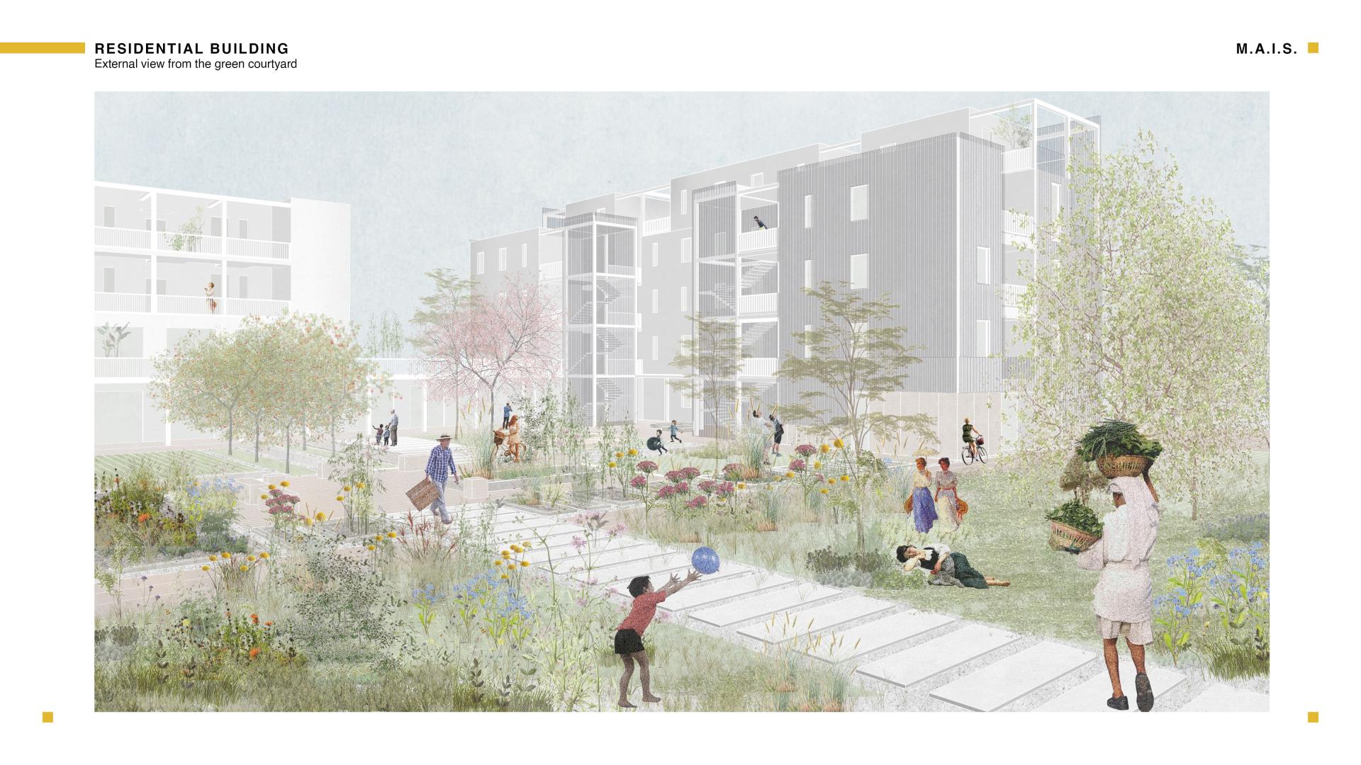 The idea of inclusion is strictly connected to the circular economy system in which every piece of the master plan has a role and that also looks for connections outside its boundaries, in the outer urban and rural landscape. M.A.I.S. is thought as an organism in which working and living in the same place make it possible to have a km 0 production of services and goods. People who live in the M.A.I.S. residential building are offered the occasion of working for the community or simply getting involved in some way, working in the gardens or the orchards and also being part of an advanced recycling project. Recycling and re-using are fundamental in this circular economy, being the last and the first step of each cycle. Milan already has a network of small “zero waste” facilities, with which we intend to work becoming a crucial point of the net. In doing this we aim at giving a wider range of people the possibility to get engaged with a sustainable lifestyle. Something that might be waste for us, could be useful for someone else and that’s why we planned a recycling facility where to collect and redistribute things, which could help to reduce waste and promote re-use, including people with less purchasing power. We believe that giving people the chance to get involved in the place where they live would help them feeling a sincere sense of identity, creating a community which is happy to contribute in the project and attracting other people from the whole city. M.A.I.S. aims to become a landmark and a model for inclusive regeneration of parts of the city that doesn’t need more shopping districts but human-scaled and -oriented solutions.