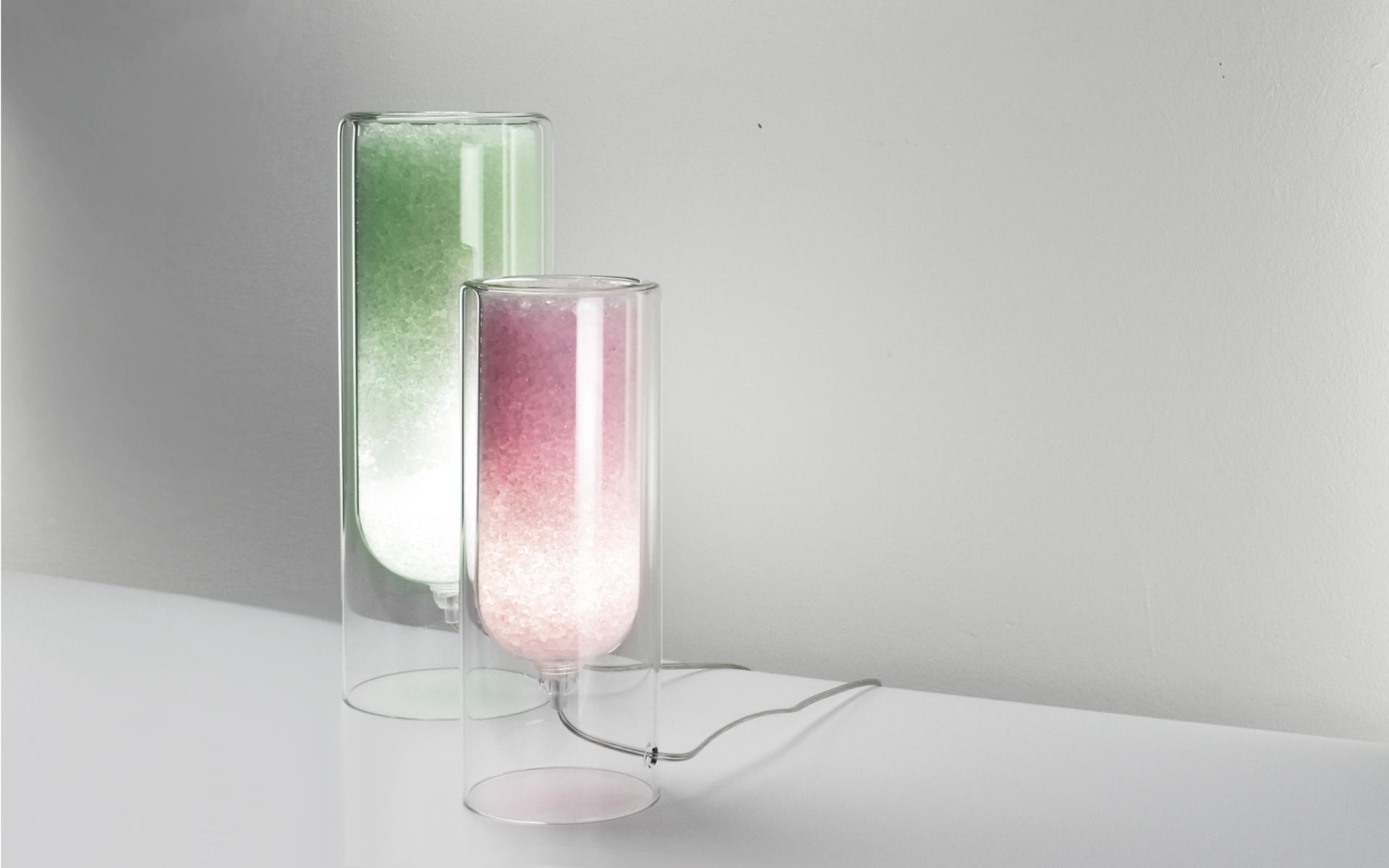 Rocklumìna innovates the use of rock salt, of Italian origin, inside a glass lamp produced in historic Italian laboratories. Using only pure Italian rock salt crystals (99.4 NaCl) and colored with natural pigments (through the use of solar energy), this lamp creates a new concept of salt lamps, with sustainable and ethical production and infinite life.
