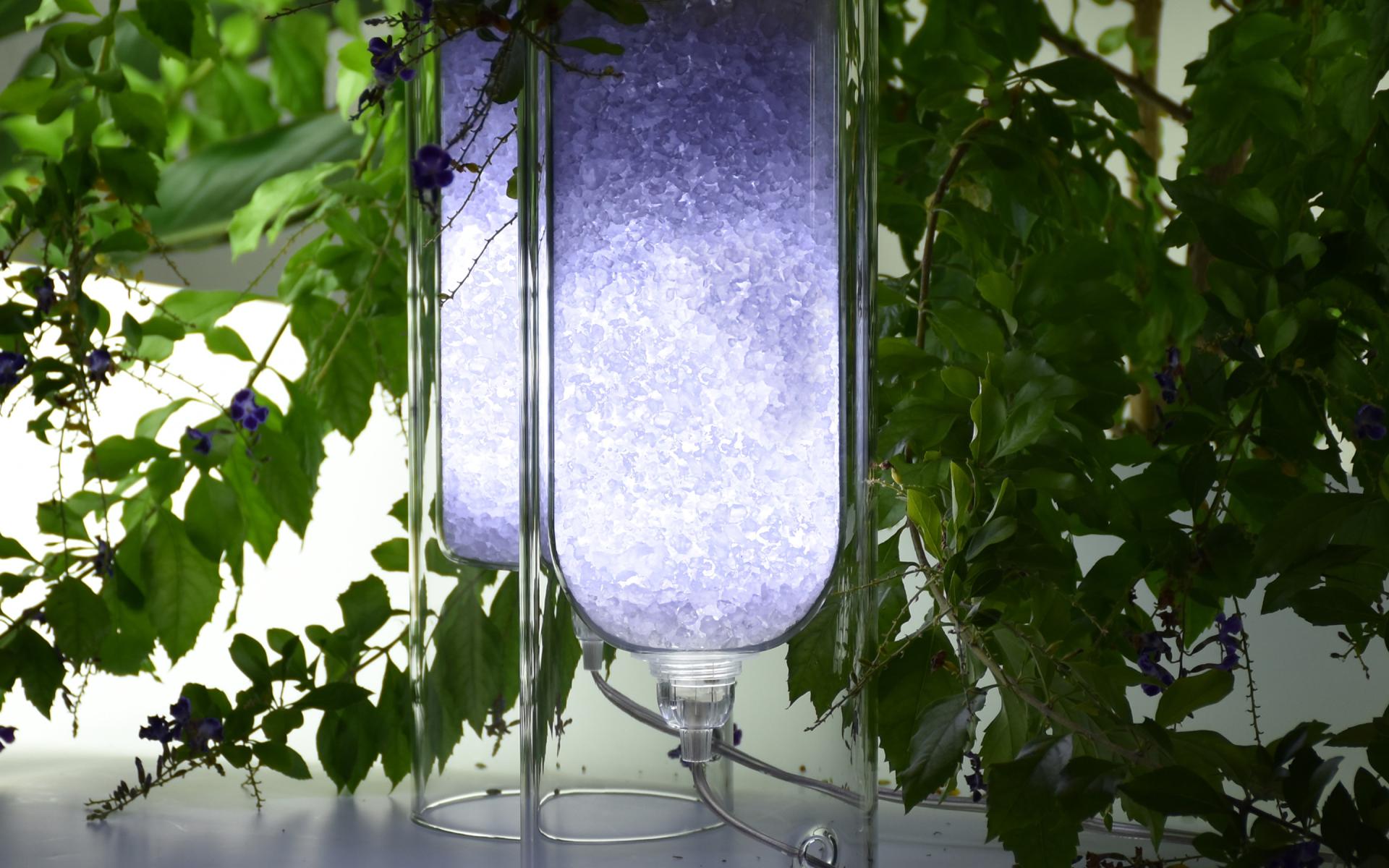 By designing an innovative rock salt lamp it was therefore decided to exploit a natural Italian and indigenous material, work it with the help of solar energy, give it different colors with pigments extracted from plants and insert it in a glass body, handcrafted with the same precision characteristics of an industrial product.