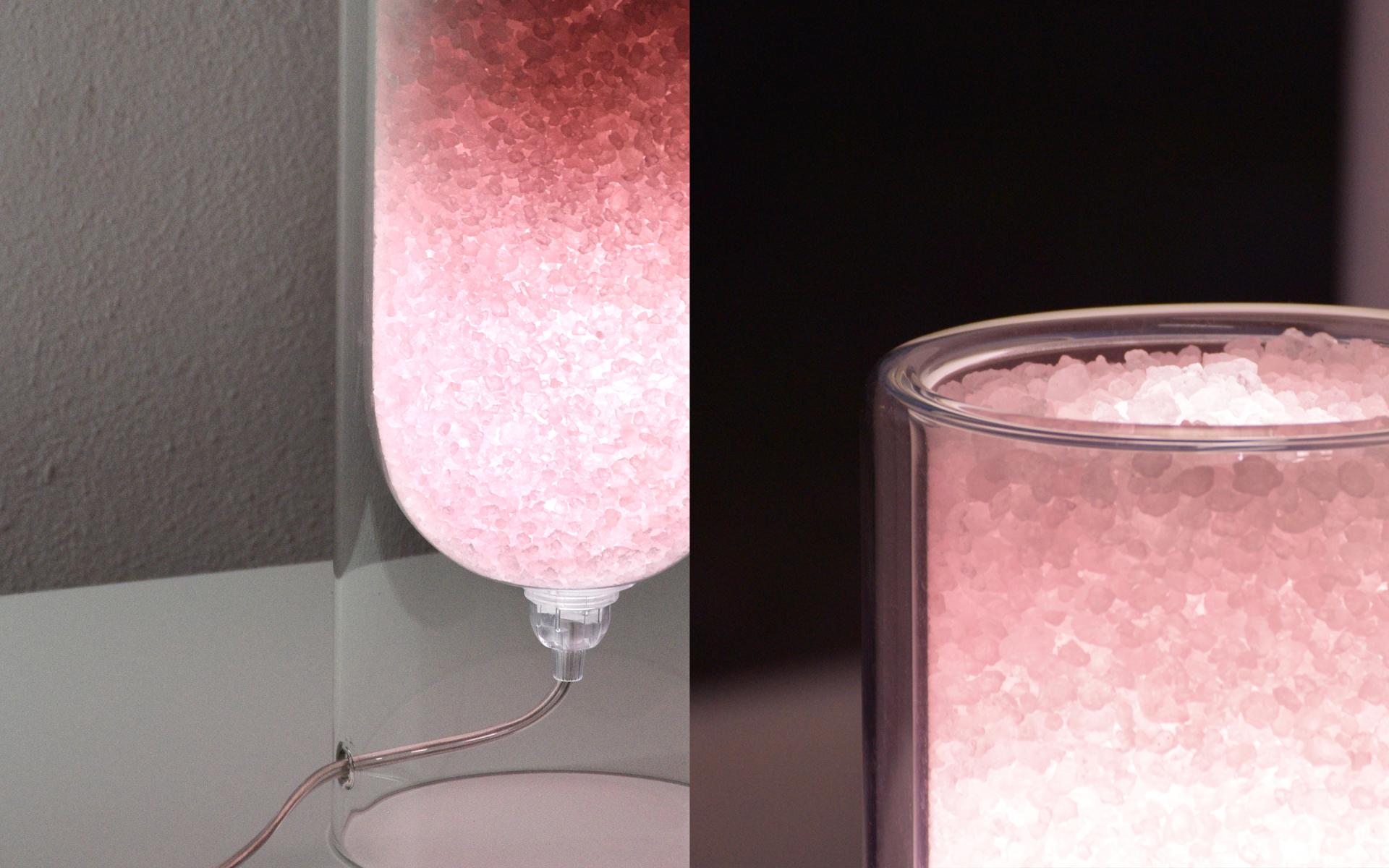 Rocklumìna was designed as an object capable of silent interactions with its user. Already from the first prototype, it was seen how the soft but strong light emanating from the crystals could be useful as a well-being tool for mood. In fact, taking a cue from the techniques for treating patients through artificial light (Light Therapy in psychology), the aim was to recreate within the project space the same effect present in the salt mines, in which non-dazzling reflections envelop the eyes of visitors, arousing an almost hypnotic feeling of relaxation.