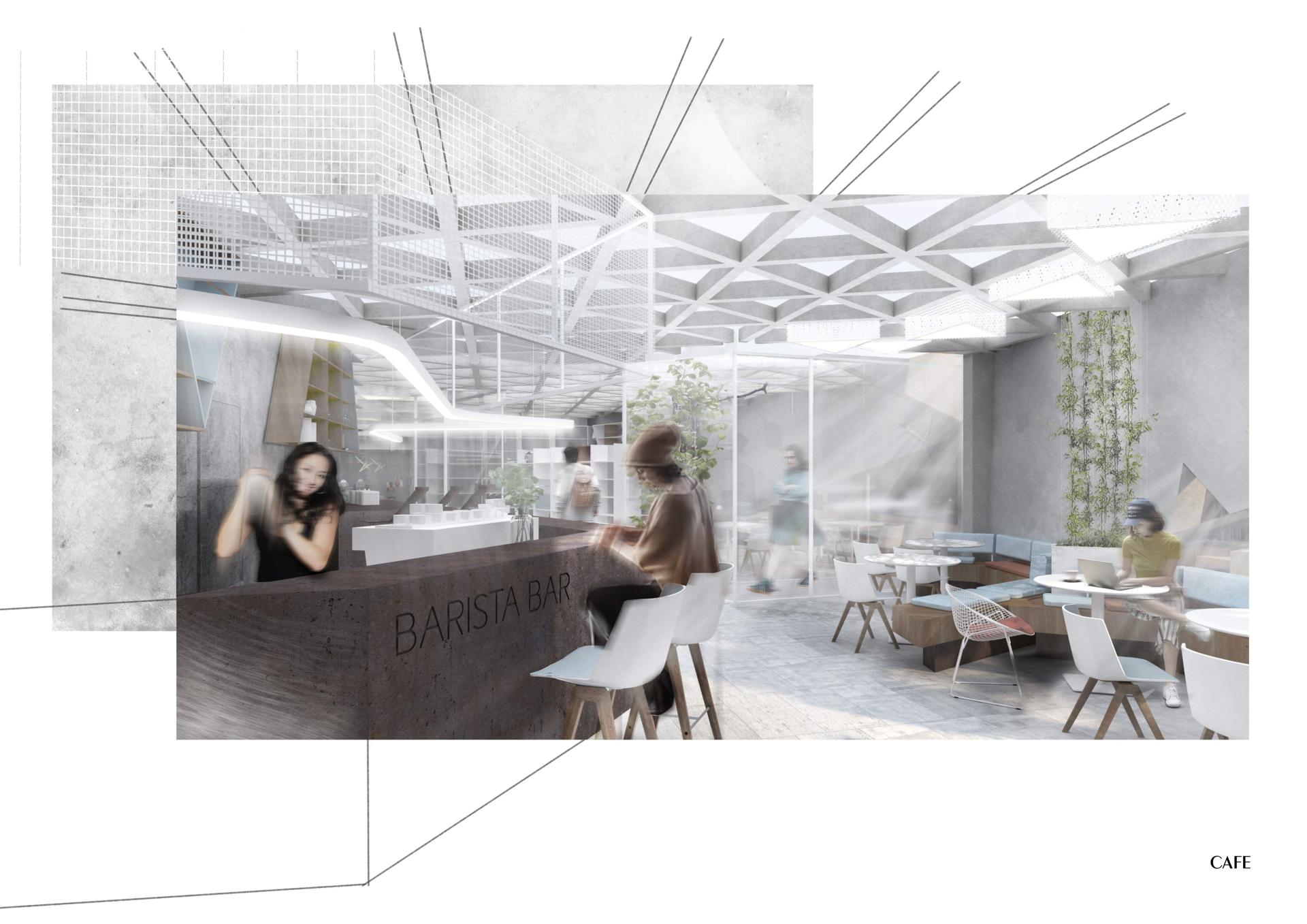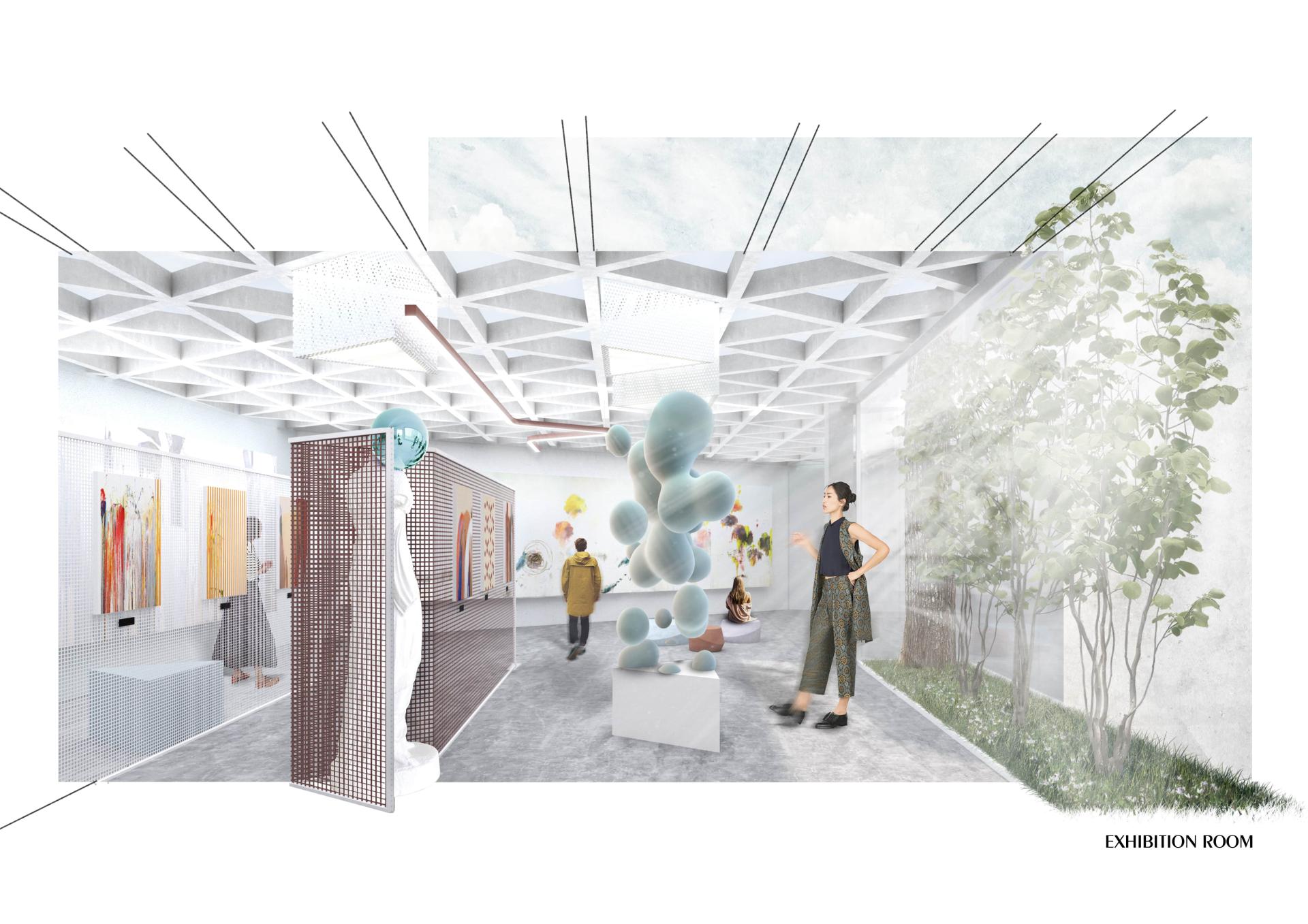 Proceeding of the needs of the visitors, the aim of the project is to preserve the green area and the silhouette of the old architecture. Therefore the new building is designed to be semi-underground which forms different kind of spaces – underground/above ground, indoor/outdoor.