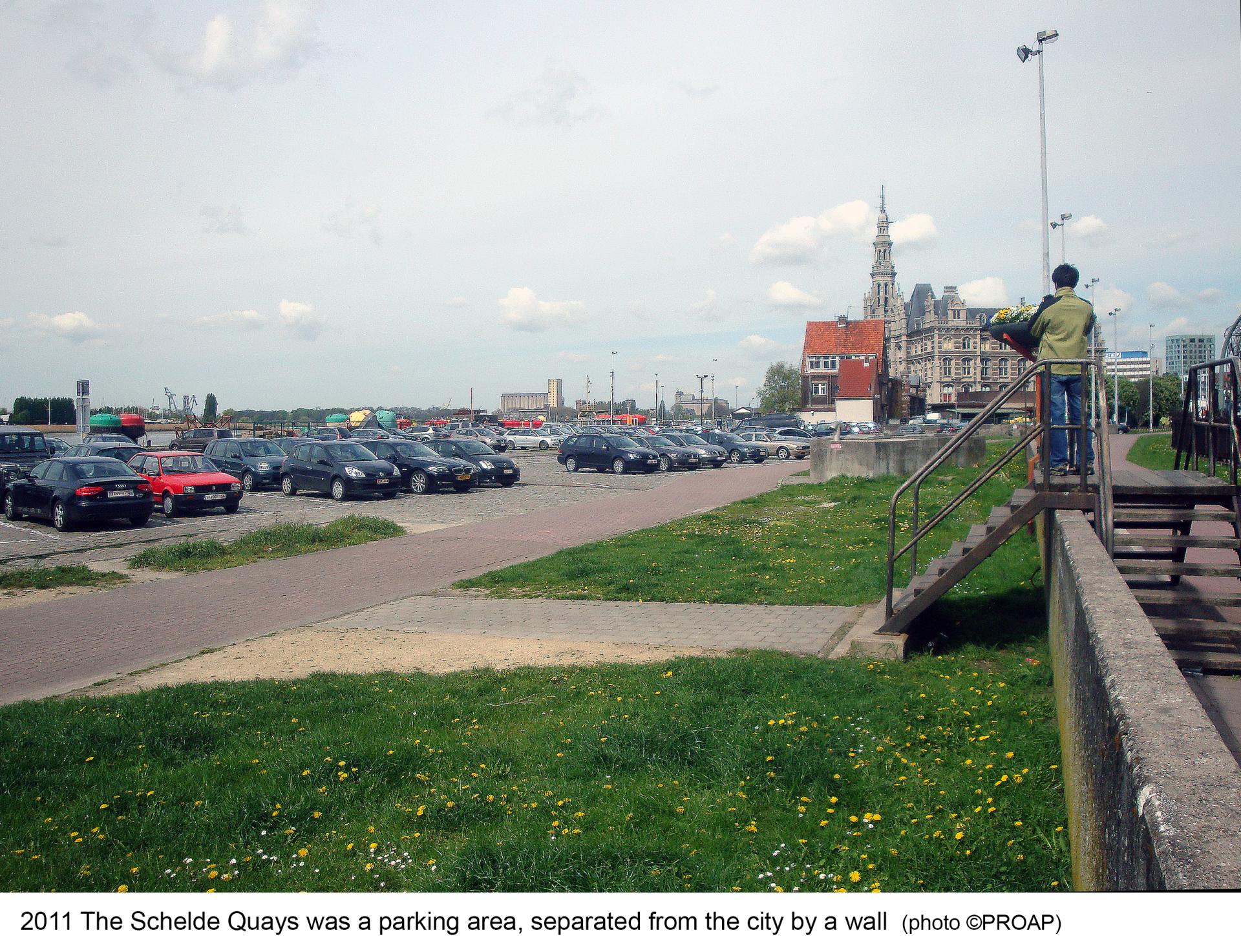 The radical transformation of the Schelde Quays from a dreary place and disorganised parking area to one of Antwerp's most popular riverside locations is the result of a major concerted effort that brought together the municipality, the government body responsible for the waterways, the port authority, the planners and the city dwellers. The involvement of the citizens right from the start of the process was decisive in making the governing bodies aware of the need to promote the transformation of this place, not only from a functional point of view - by solving the hydraulic problem - but above all from an urban and social point of view - by giving back that area on the river which the citizens felt deprived of and whose potential they sensed.