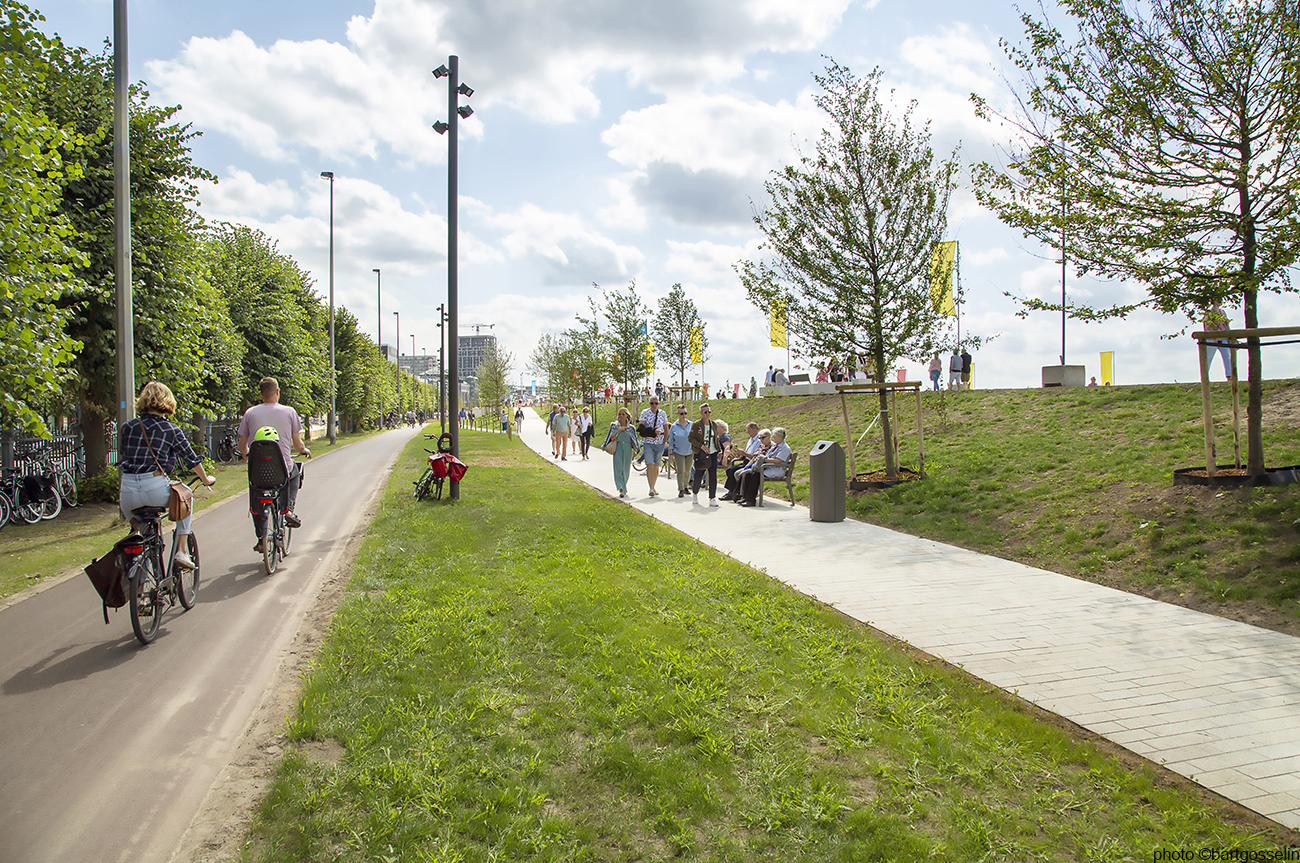 We can say that the Schelde Quays represents an innovative approach to infrastructure design, insofar as the waterbarrier fulfils its functional purpose (the creation of a physical barrier against flooding) but it is not limited to this.