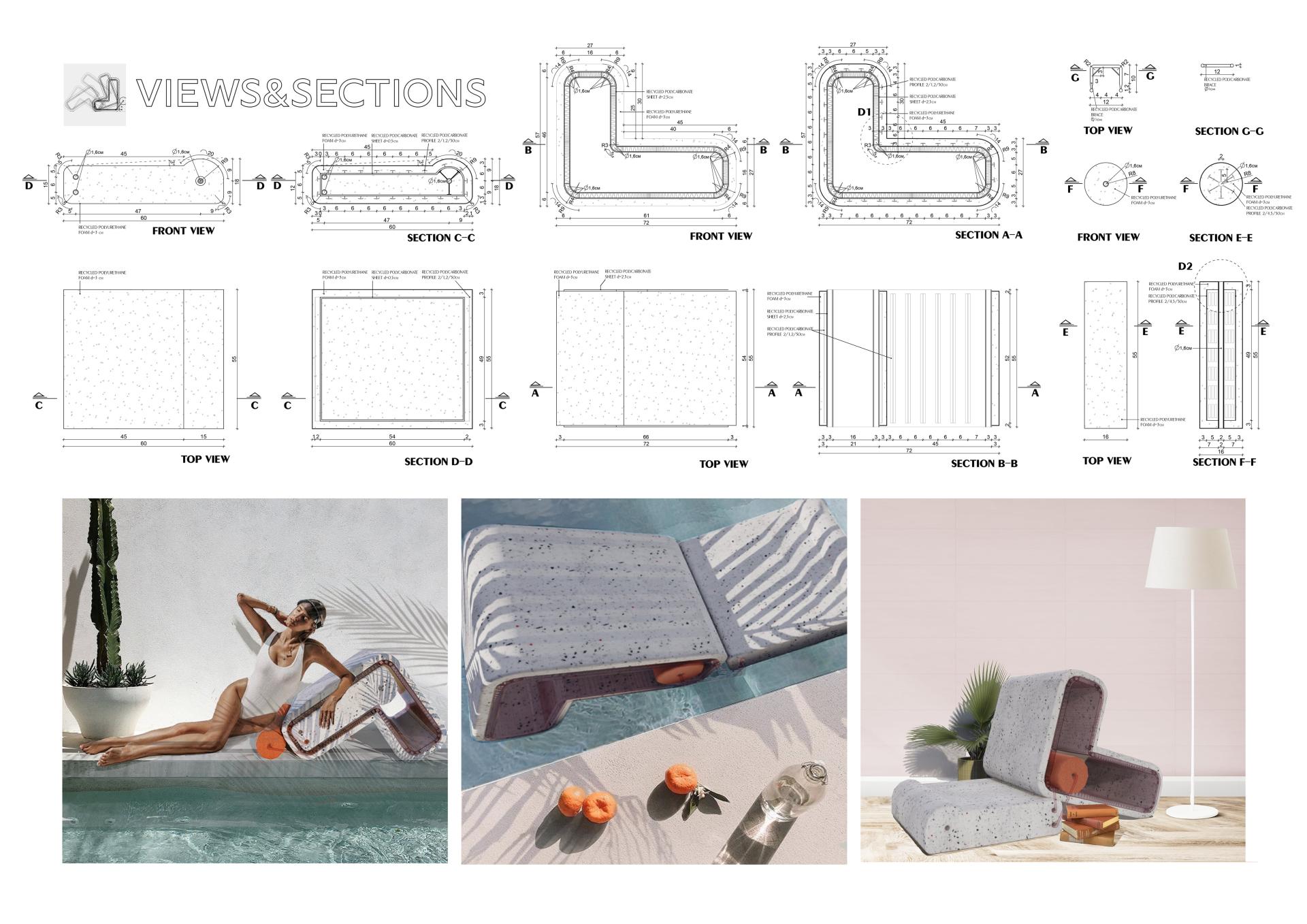 The transforming chair is furniture made completely by recycled materials which can be transformed and form various types of seating. By rotating and changing the position of each element the product can form sunbed, armchair, pouf or chair with a table.