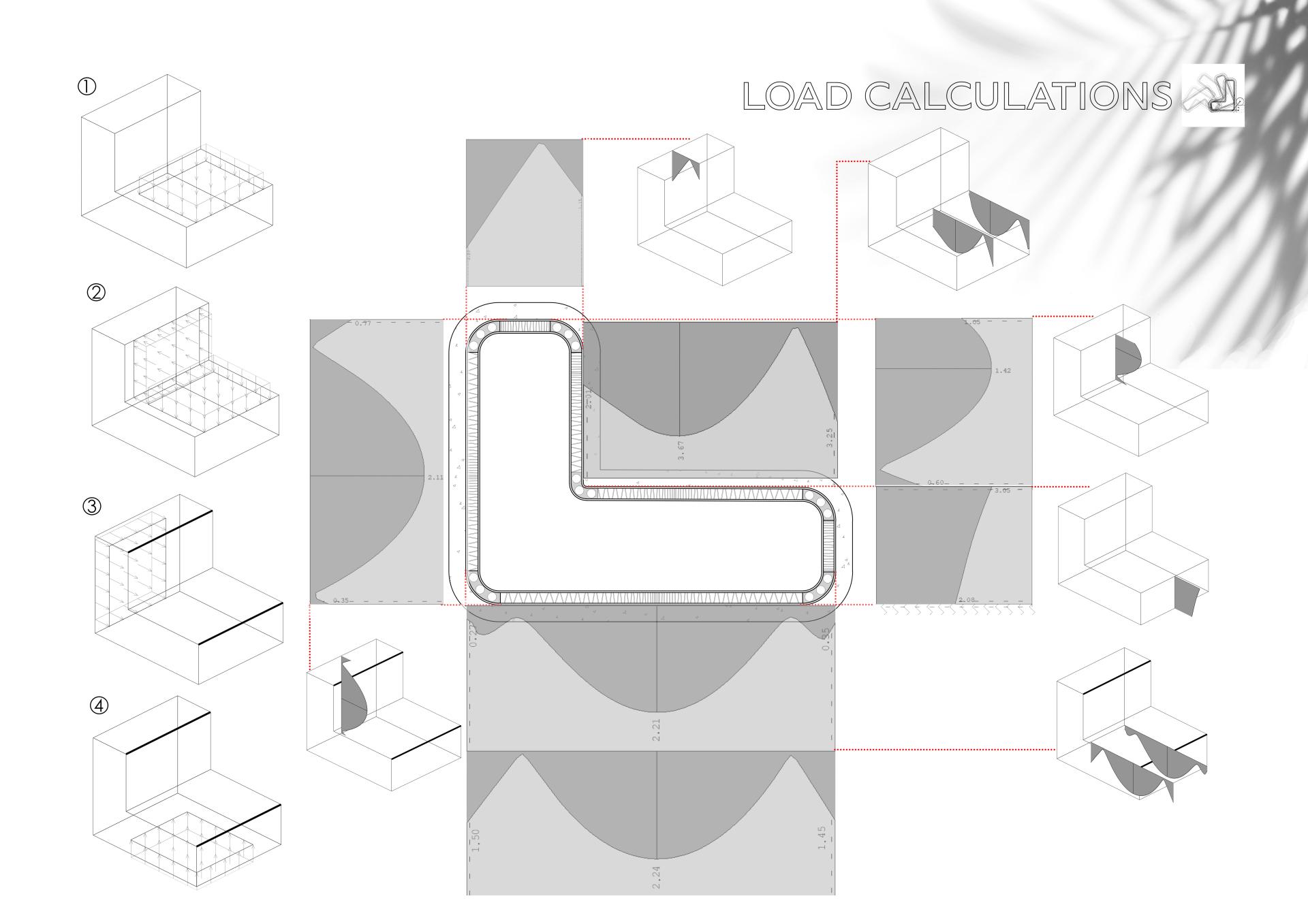 The calculations made by engineering software shows the peak of the most loaded point in every plain of the volumes. Therefore the polycarbonate sheet is designed to be strongest in that point.