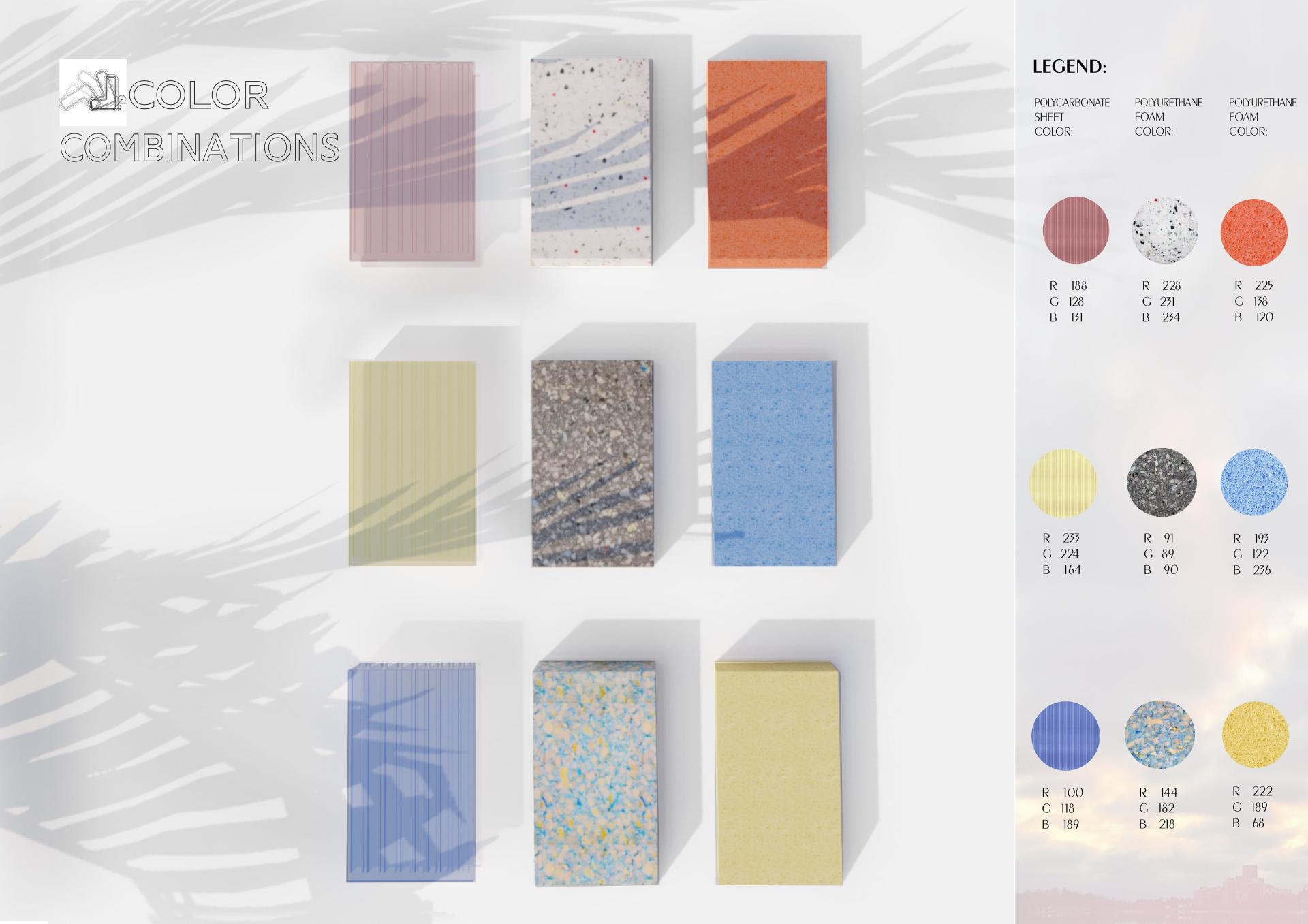 Polyurethane foam is recycled by regrinding – polyurethane is trimmed and grind to produce a fine powder. The resultant powder is mixed with virgin materials to create new polyurethane foam. The new material is molded and strongly connected with the polycarbonate profiles and panel.