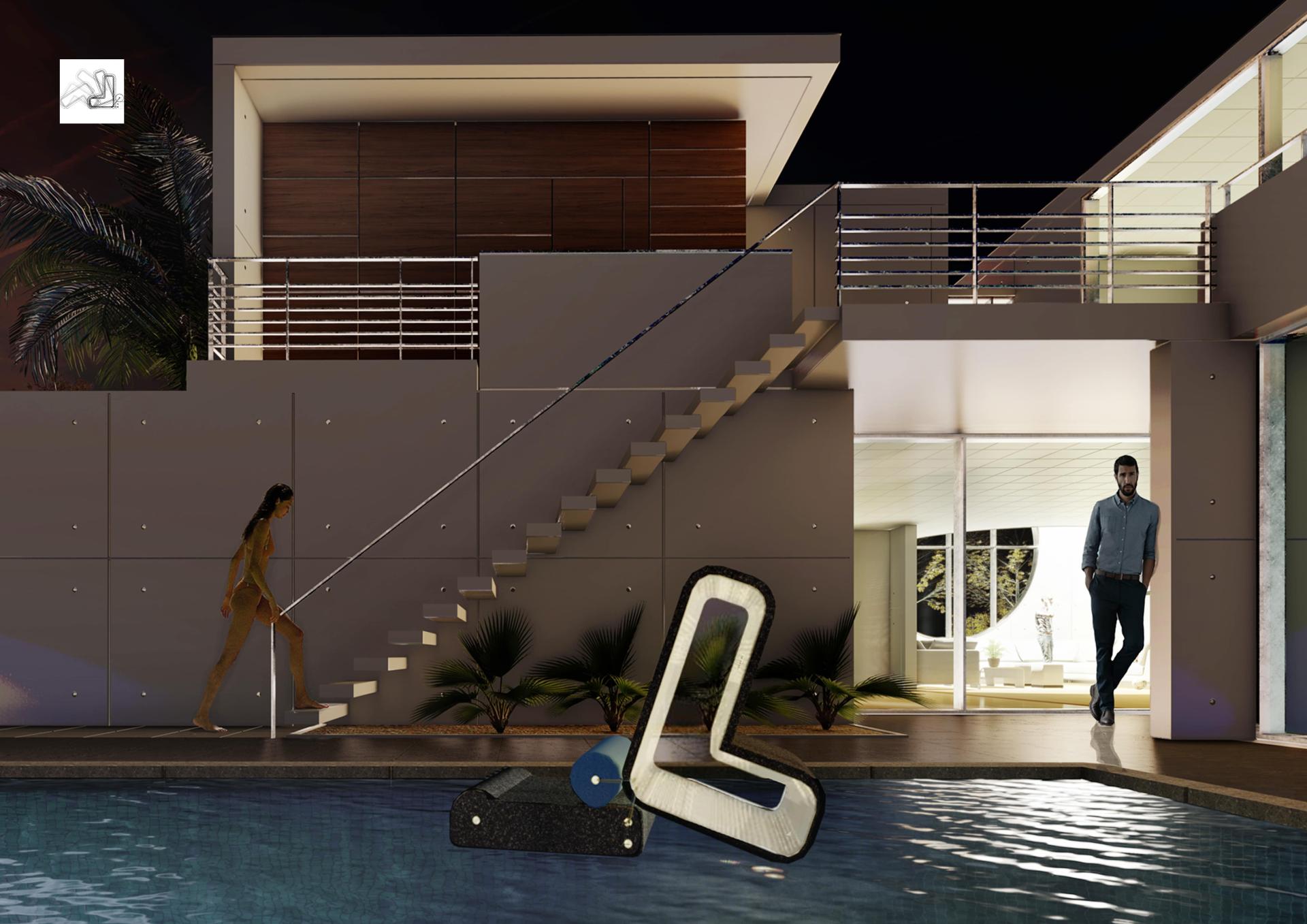 The transforming chair is perfect for exterior conditions as well as for interior. Preventing from yellowing, the foam consists of ultraviolet absorbers and the light weight of the foam/closed cell polyurethane foam/ and sheets allow the chair to be used in water.