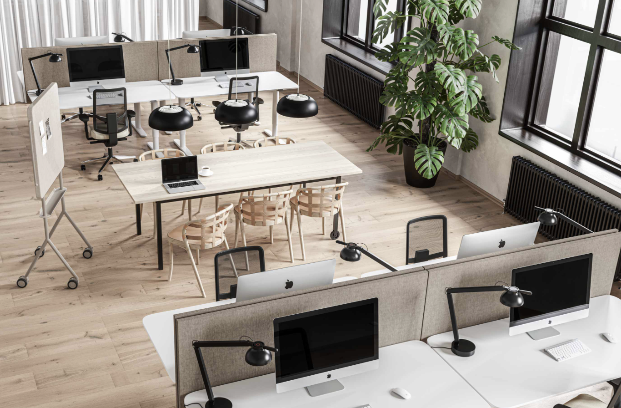Our products are also chosen based on their quality and functionality. We work with brands such as Gemla, Hay, Herman Miller and Zilenzio to provide sets that diminish noise pollution, offer comfort and flexibility (ie: sit/stand desks and ergonomic chair design), and use recycled and sustainable materials such as fabric made from recycled PET plastic and solid wood materials that are all Forest Stewardship Council (FSC) certified.