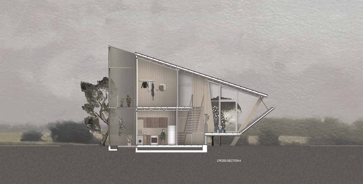 The result is a house that can include all of these but in a very free way since it has no other designated use for its divisions apart from a kitchen and a bathroom. Even these, as well as a big part of the house are modular in size. Instead of creating fixed inside partitions there are movable panels for inside walls, giving the freedom to the user to adapt them to their needs. Designing this house, I basically invite the user to think about how they want to live their life and take action to physically create it.