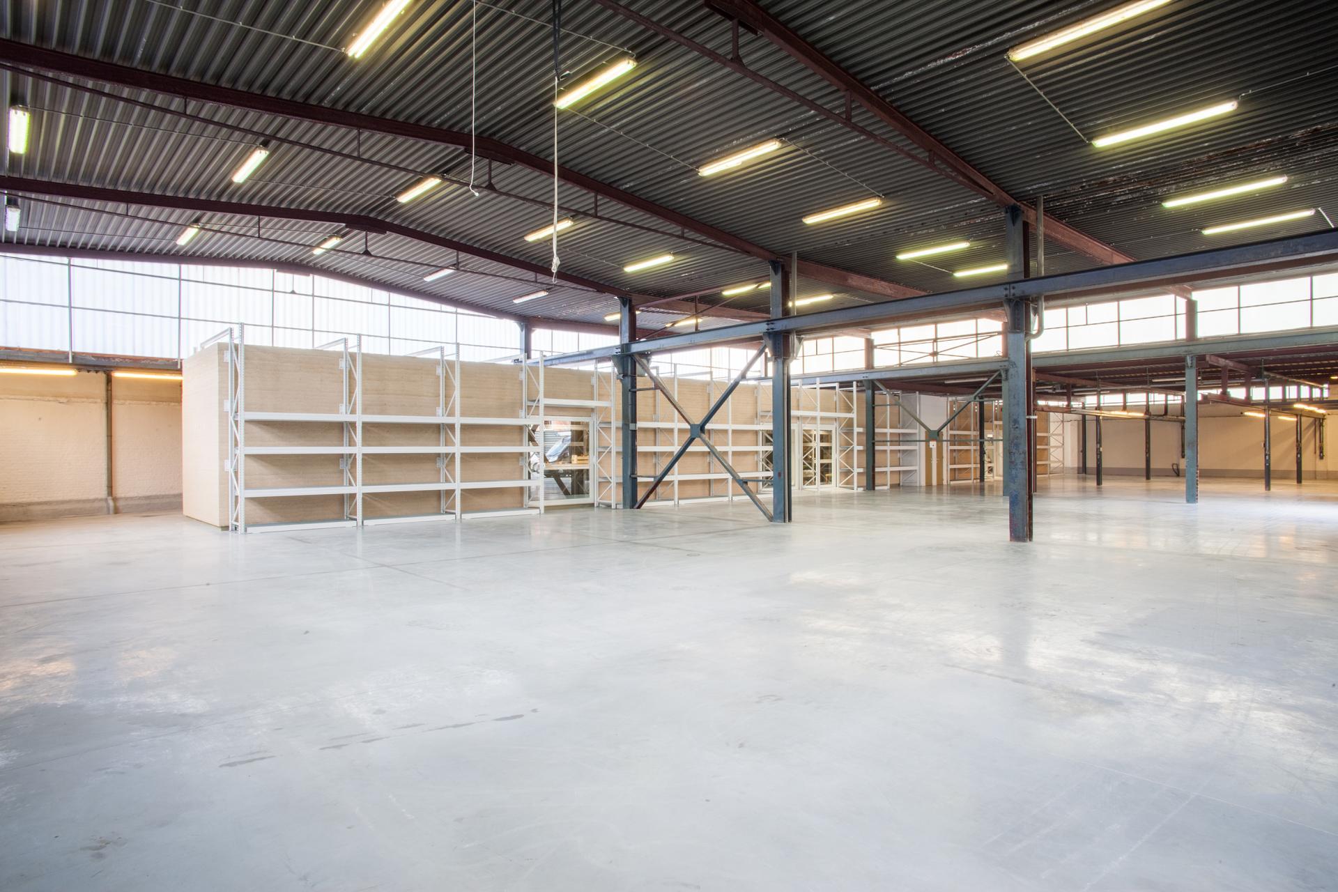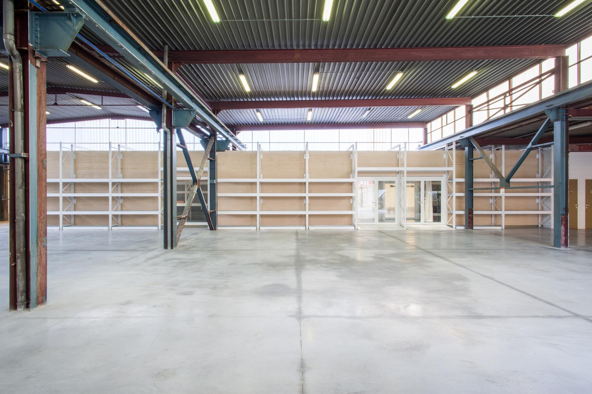 In the warehouses, an insulated long prism is designed, which structures the open plan into a public and private zone. The prism accommodates small workplaces, an office space, a reception, a small studio, and facilities.
