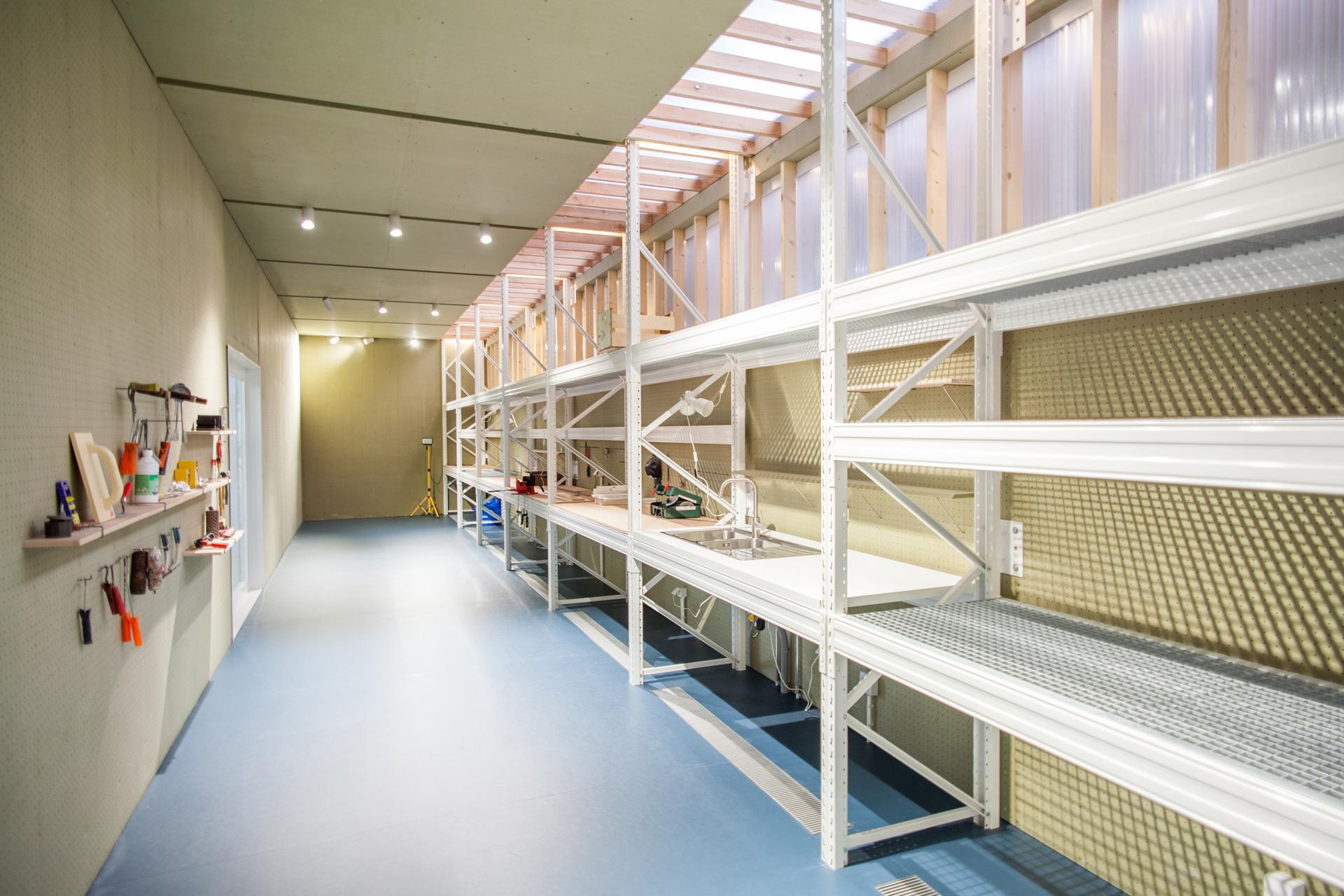 Renovation of warehouses into an artist’s studio and exhibition space. The studio accommodates small workplaces, an office space, a reception, a small studio, basic facilities and storage space.