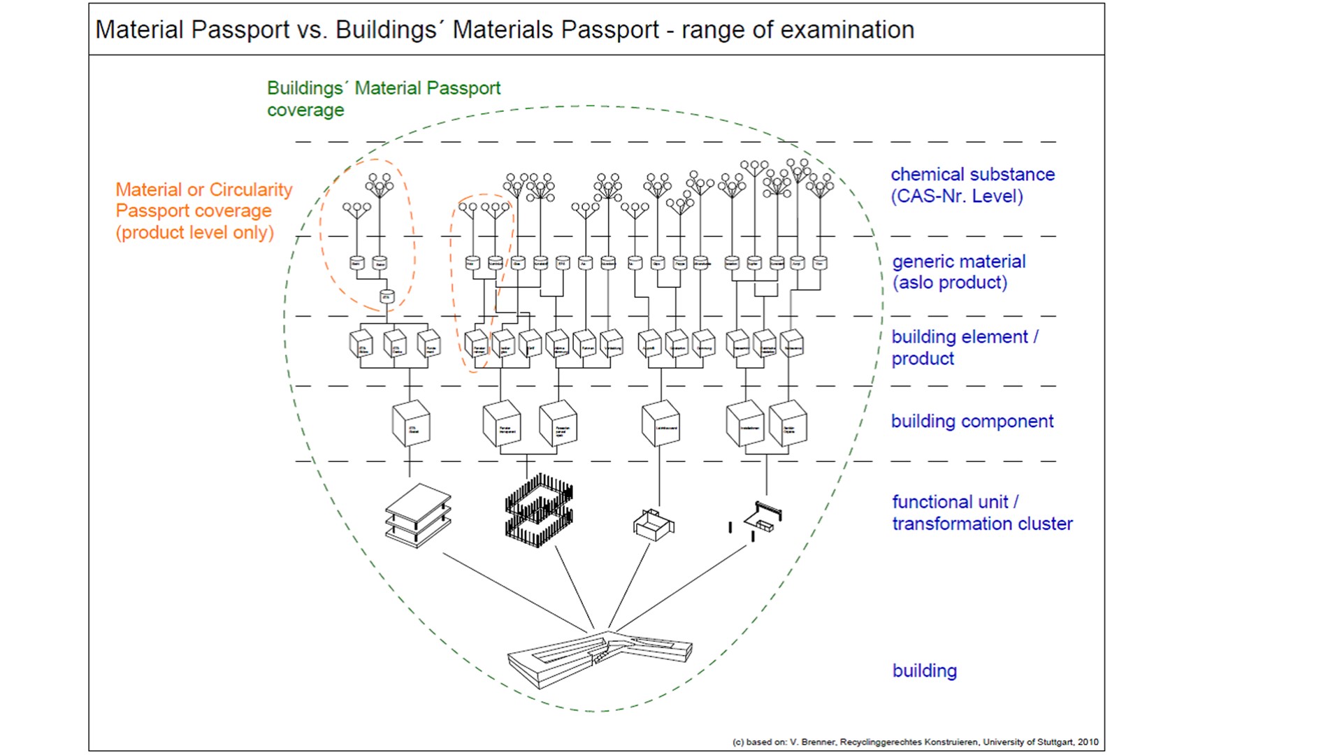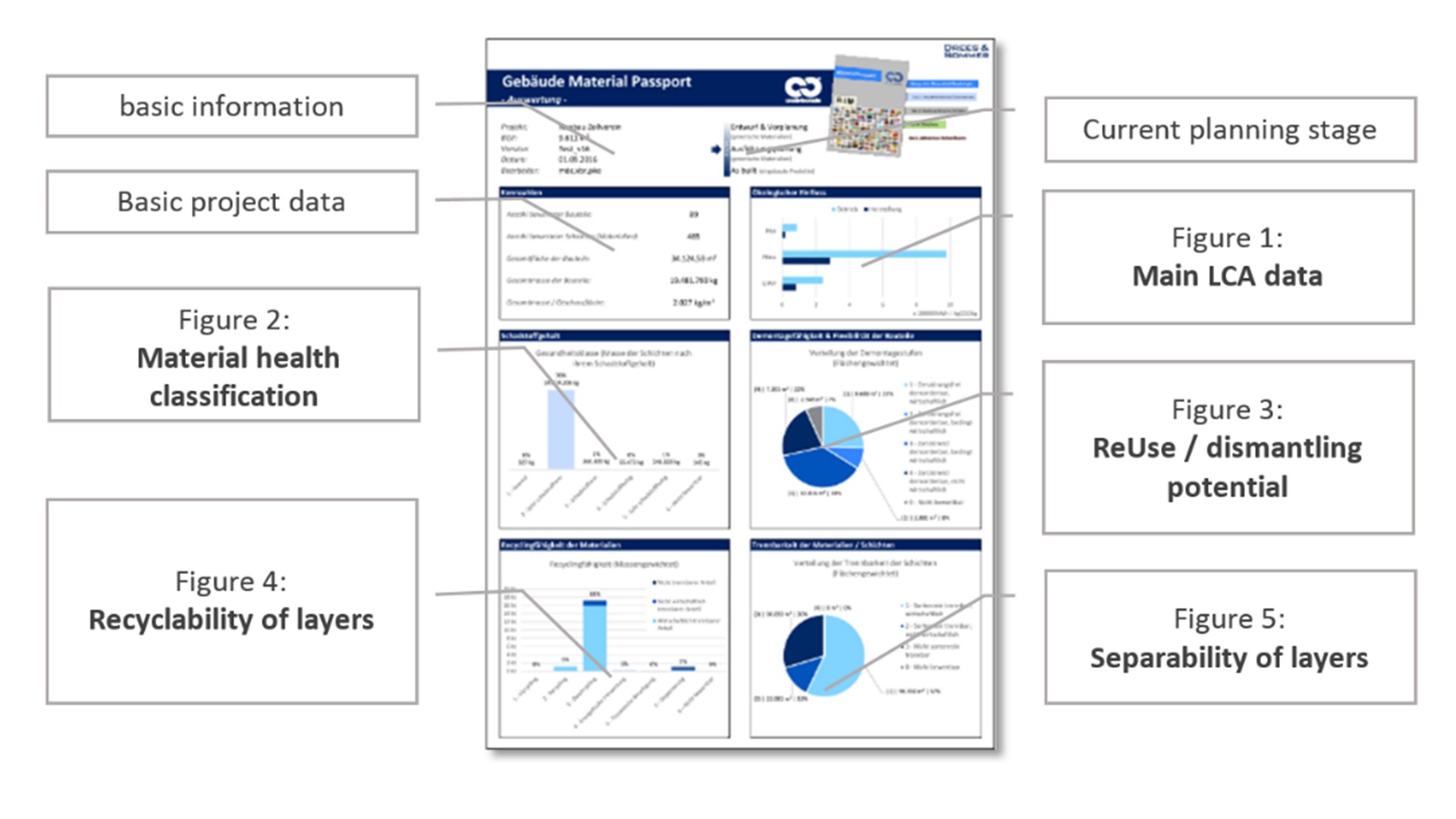 The “Building Material Passport” has been developed as a concept for a tool fulfilling all these requirements and subsequently was to be applied under the realistic background of a project development scenario on the German market. As it applies to this building, the “Materials Passport” refers not only individual construction products or building materials, but rather to the entire structure of the building at all levels. It can therefore be understood as a “Buildings’ Materials Passport” that covers the whole building which is greater than the maximum data depth for individual products.