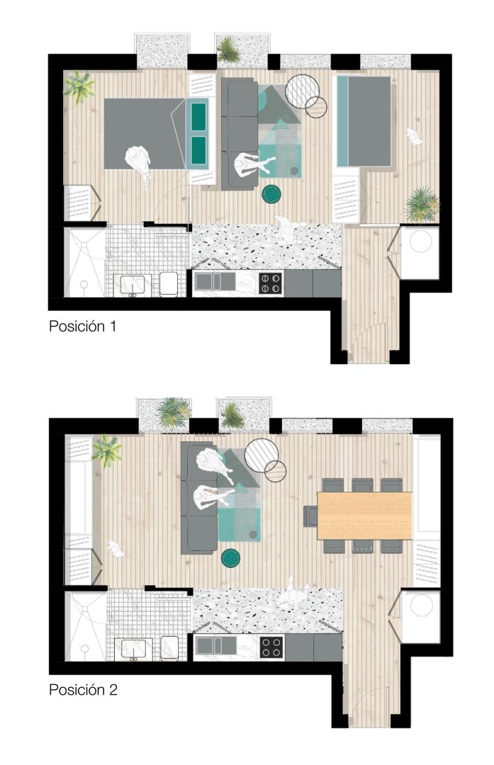- María José and Enrique, Spanish and Mexican retirees who live halfway between Mexico and Spain. In their residence in Spain, in Asturias, on the beach, they need to have one or two bedrooms, depending on the number of guests they receive throughout the year, this allows them to have a loft for two months and a summer house for another four months.