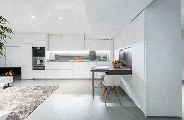 The whole aesthetic is subordinated to a user experience based on a generalized lack of space. In this sense, we no longer think of a house represented by the number of bedrooms but a home of infinite situations. This is how architecture becomes a scenario that facilitates the life of its inhabitants...