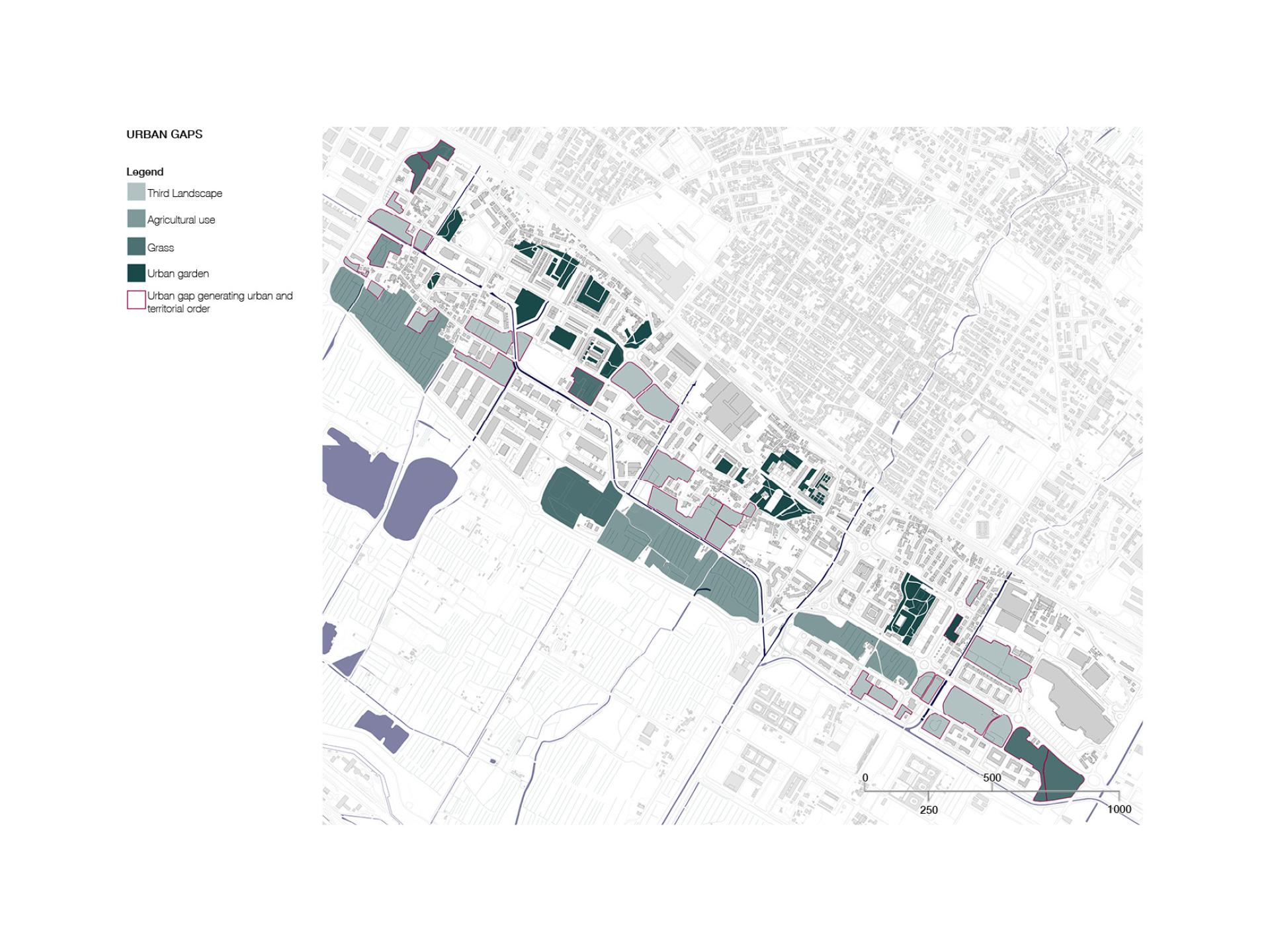 The border has then been redrawn by giving each empty space a function. The strategic reuse of the abandoned functionless areas is based on environmental and spatial sustainability: to avoid the additional land use by attributing to some of it a new function or to preserve the typical biodiversity of some fragments of the Third Landscape.