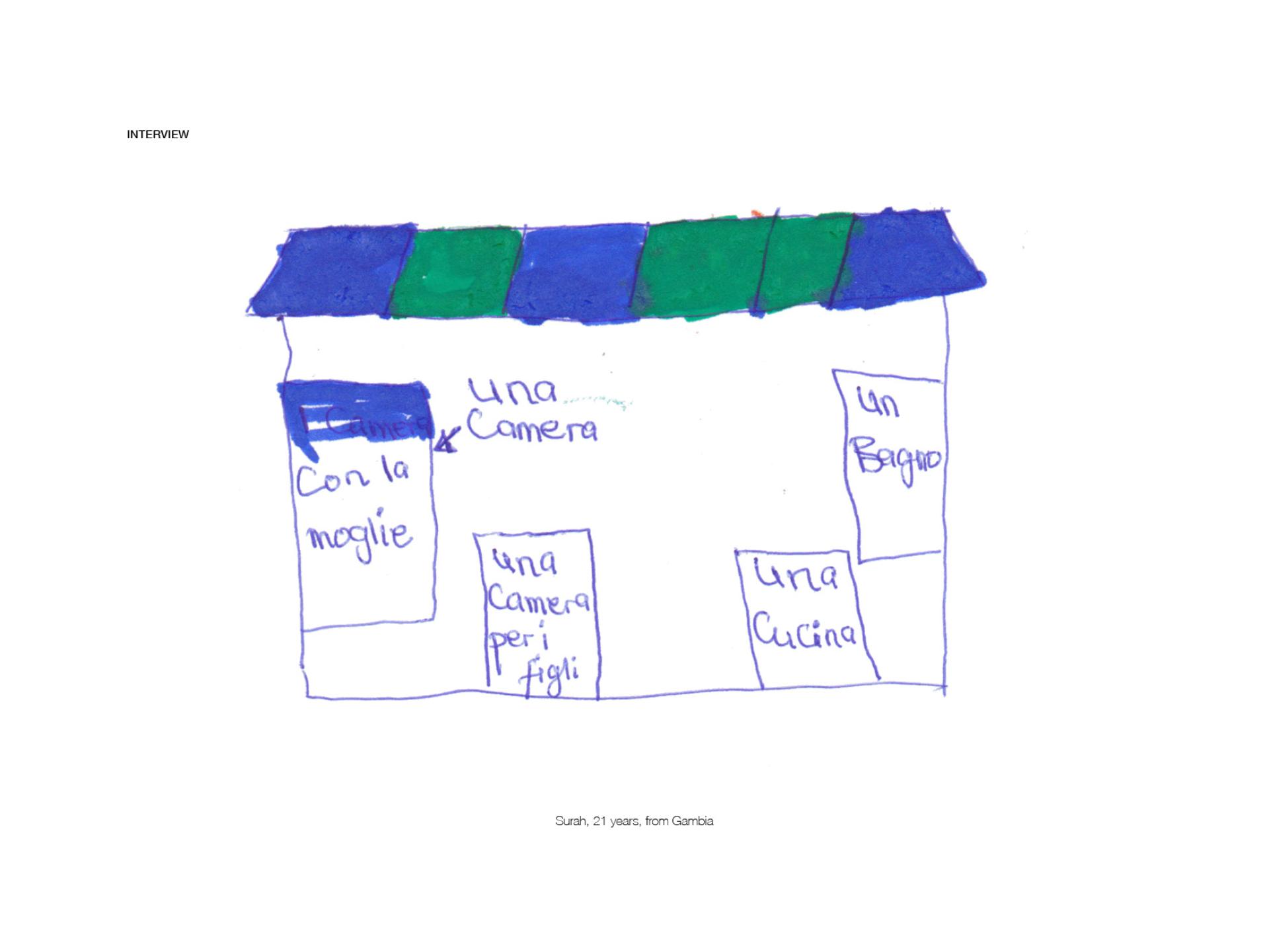 The interviews carried out at the receptions centres of the Florentine area were essential to this project: questions were asked about the city of origin, the type of dwelling and how many people used to live there; during a second part the individuals were asked about the work they have – or would like to have – in Italy. These interviews lay the foundation for the participated design. The answers decide the choice of activities to be integrated into the multipurpose centre and the housing project.