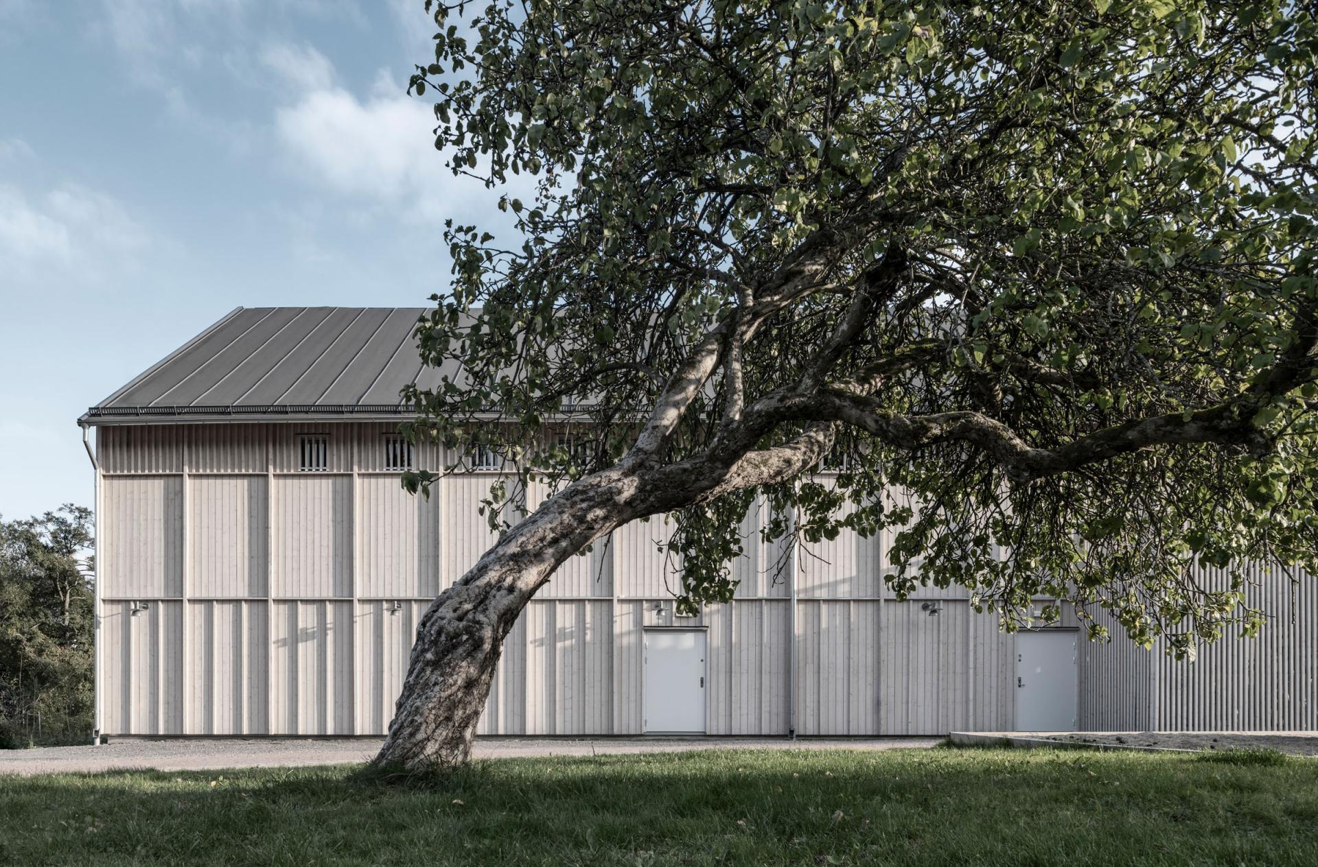 The grounds have been decontaminated, the factory gently renovated and supplemented with a modern newly built church, completely made from wood. A church placed in a new context which opens up opportunities to really function as a community center for the whole of Floda. South facing roofs are covered with solar cells.