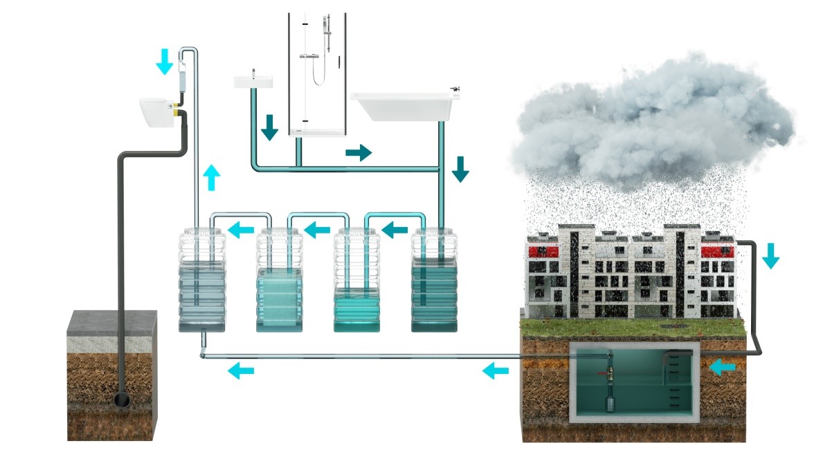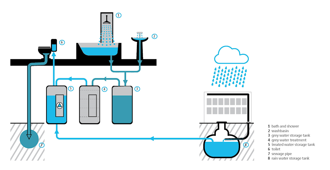 "From a user perspective, we don't actually observe anything in our daily life, meaning that it does not limit us in any way," says one resident. "We are happy that the water is not colored. We also like the savings and the partial independence of the building."
