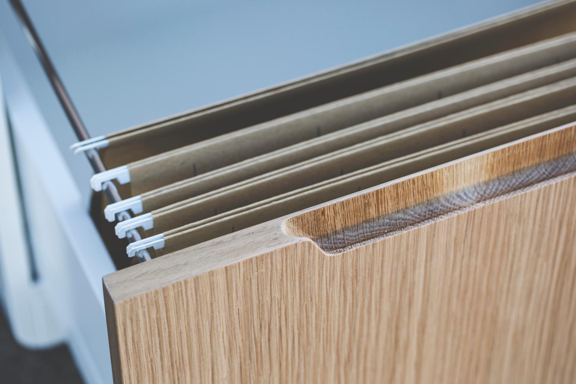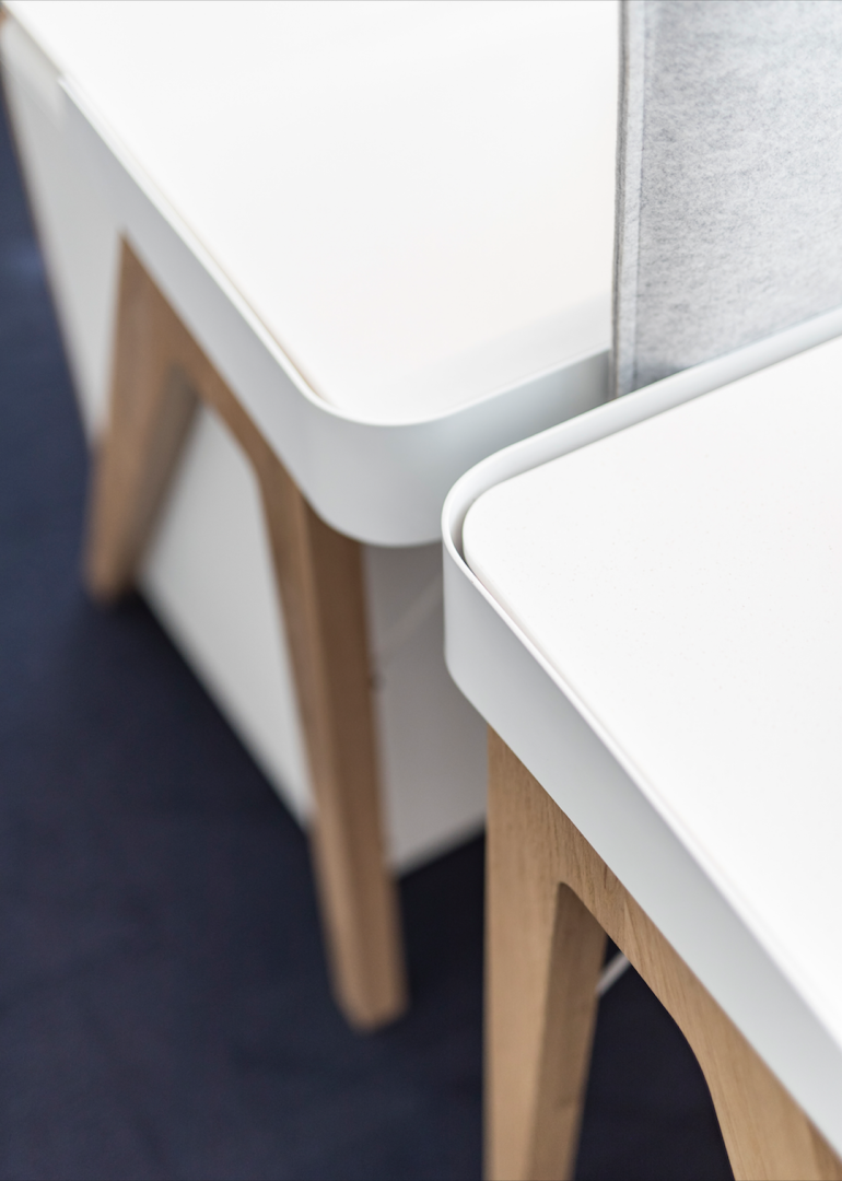 In terms of durability, each piece was tested by an external expert and received a certification of compliance with NF EN 527-1, NF EN 527-2 Office furniture/desks, NF EN 15372 - Non-domestic tables, NF EN 14073 - Office storage.