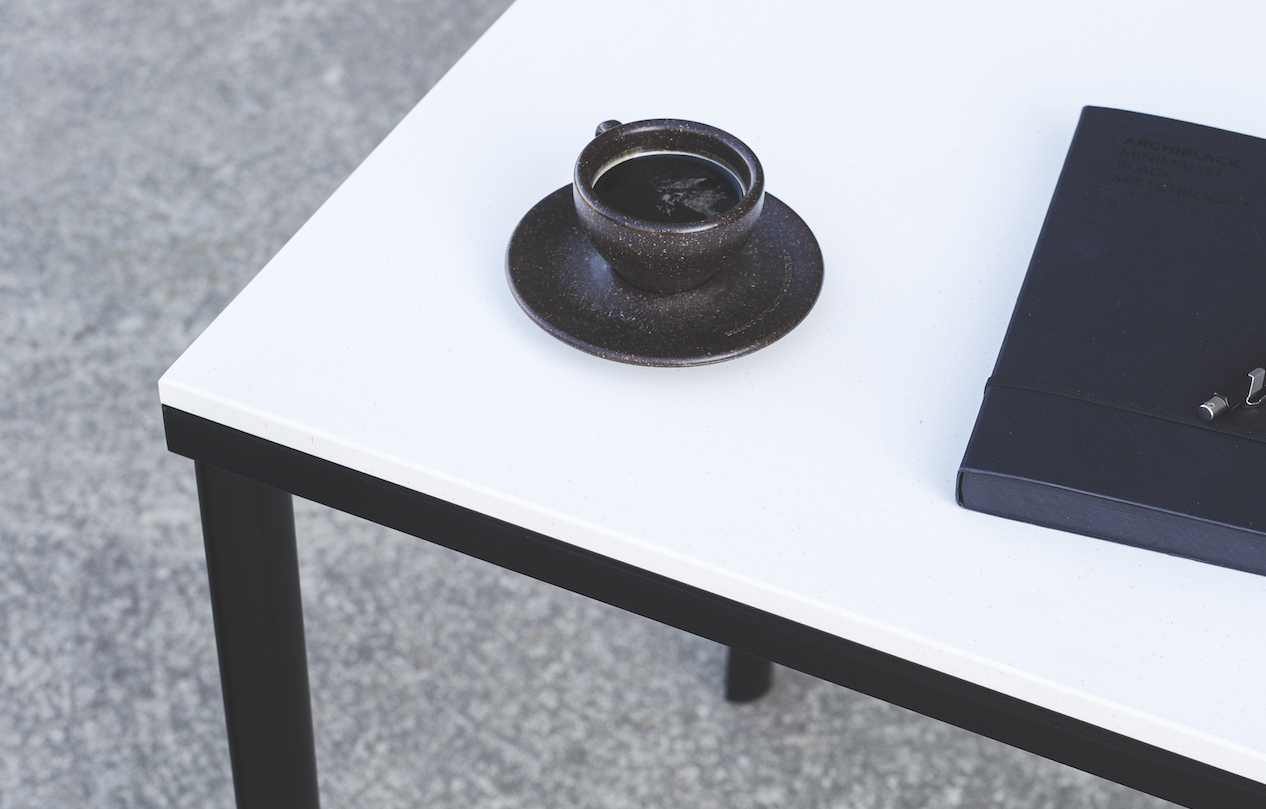 The CI• table is made from recovered steel, recycled MDF and 100% recyclable post-industrial plastics, Durat®.