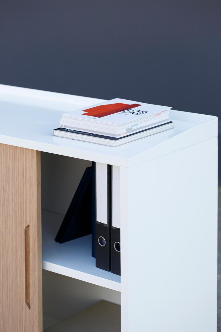 The metal belt is a nod to a timeless line but also a feature to keep its surface tidy. The sliding doors are designed to minimise the use of space and to simplify handling. Complies with NF EN 14073.