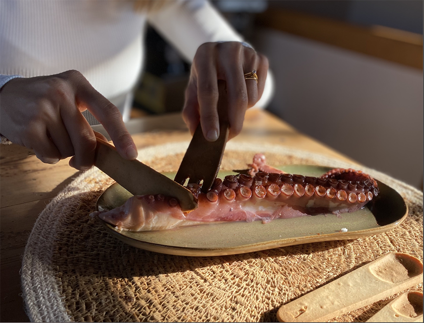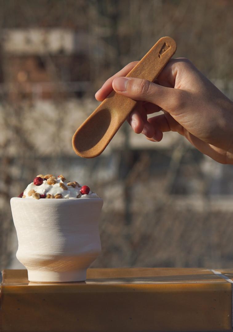 "The Voilà concept introduces a new typology of cutlery that give rise to new ways of handling food. A product designed with the methodology that comes out of the earth and returns to the earth, also providing a gastronomic and nutritious gastronomic and nutritional experience for those who want it."