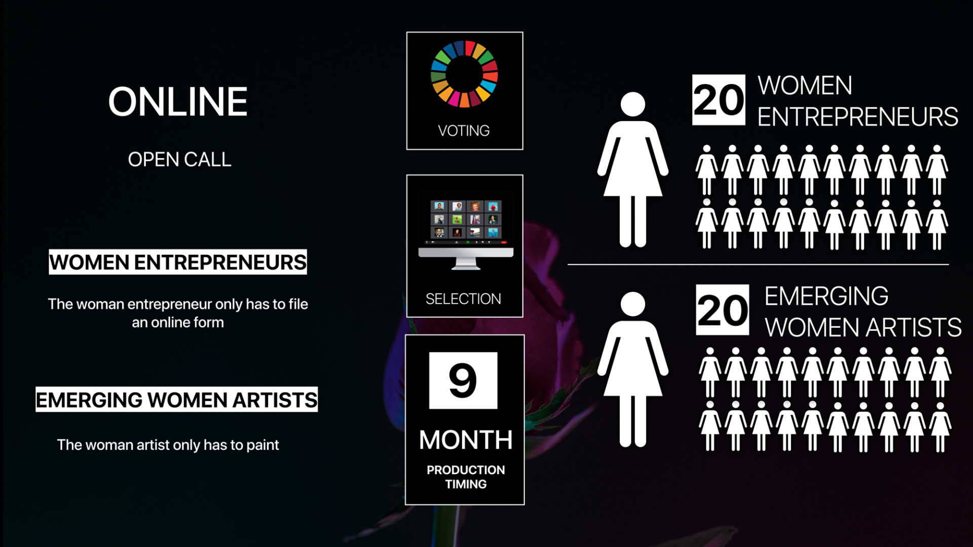 - STEP2 - Open call to find the 20 WOMEN ENTREPRENEURS and 20 EMERGING WOMEN ARTISTS.(via web)