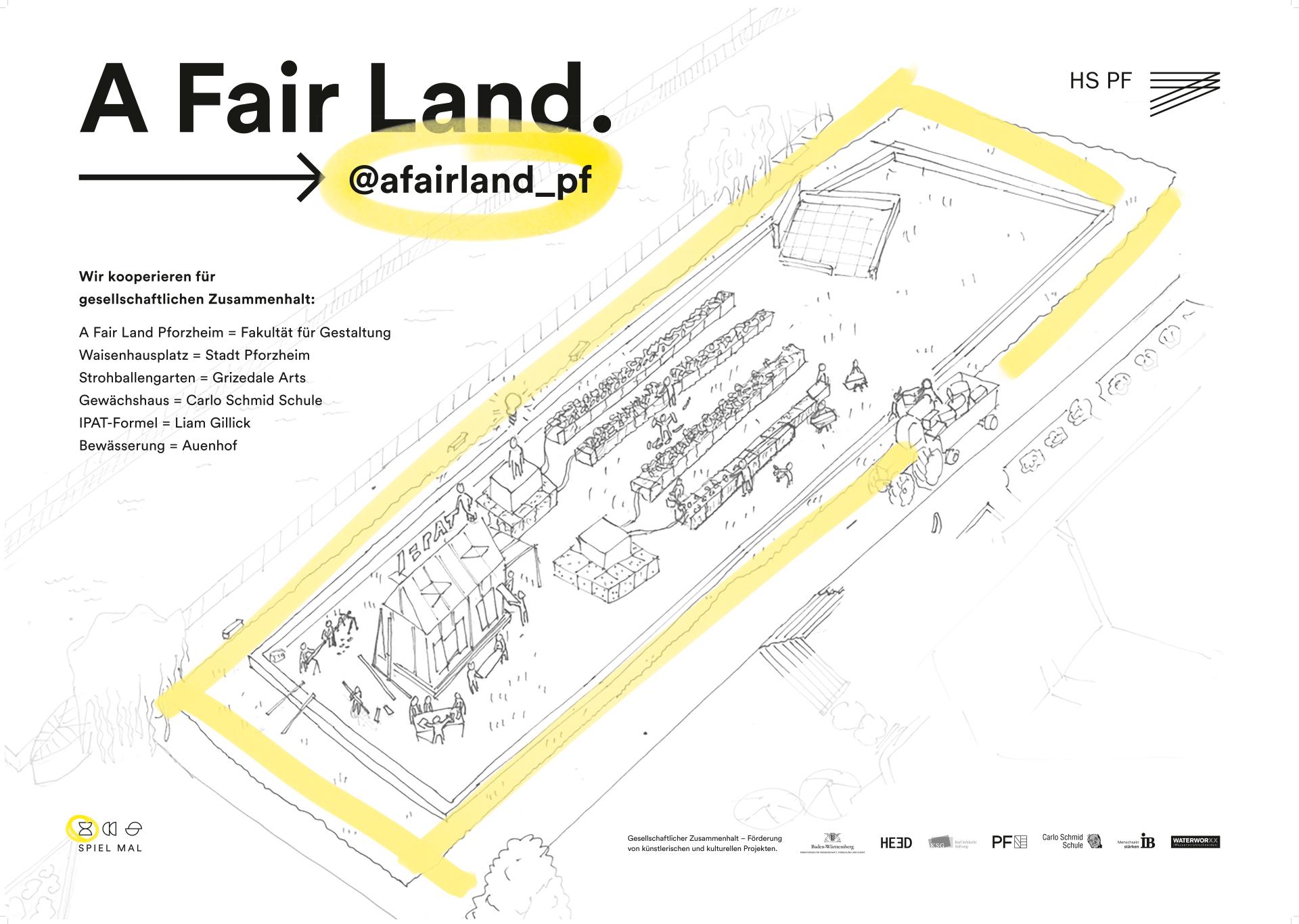 The Waisenhausplatz is an area in Pforzheim’s city center between the municipal theater and the Enz River. The large undeveloped open space was created by the complete destruction of buildings during the devastating air raid on Pforzheim in February 1945. The site where the Pforzheim orphanage stood is considered the nucleus of the local jewelry and watchmaking industry, a tradition with which the city identifies to this day. The floor plan of the former orphanage is marked by a ground sculpture. The open space is considered an urban meeting place, but is always used in isolation by individuals and groups. Since there is no sense of “we” at the site, the large area has often been misappropriated for trash disposal and as a dog pound. The “Fair Land Pforzheim” project succeeded in rebranding the square as a place for social interaction and dialogue. The citizens followed the construction attentively, took responsibility for the planted zucchini, were happy about the harvest and participated in the offered workshops in large numbers. Vandalism was completely absent. Especially during the “Activity Week”, the square became the secret center of social life. During the Corona loosenings, the square was used for joint workshops, meals and recreational activities. Since the dismantling in the summer of 2020, there have been efforts on the part of the citizens to continue their “Fair Land”, an endeavor that the city is eager to take up in the run-up to the Ornamenta 2024. The central values of “A Fair Land”, the compatibility of social, ecological and economic sustainability – useful, desirable, achievable? – have since been incorporated into the preparations for the upcoming major event and will be applied to the entire urban area in 2024.