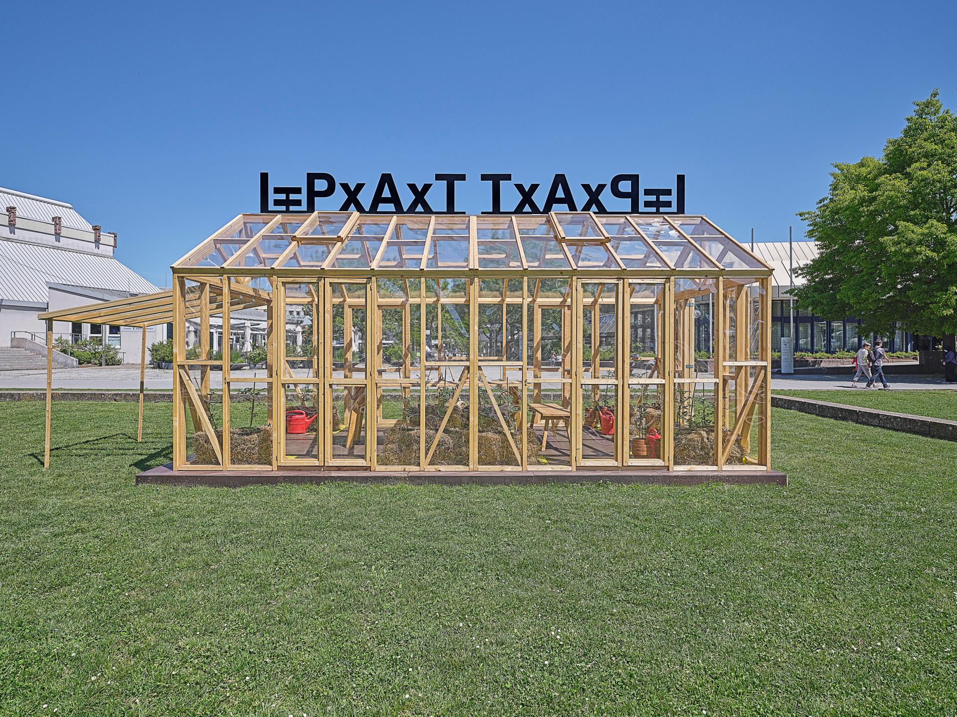 In “A Fair Land Pforzheim”, cooperation was written large, so that in addition to numerous local actors, several artists also contributed to the success. On the roof of the greenhouse designed by pupils of the Carlo Schmid School, the work I=PxAxT by British artist Liam Gillick reminds us that any vision for society as a whole must make its reckoning with the environment. Drastically, the IPAT formula Gillick uses for his work illustrates the interrelationships of population size (P), affluence (A) and technology (T) and their impact on the environment (I). The equation, which dates back to the 1960s, has not lost its validity today and is teached in the studying Resource Efficiency Management course at Pforzheim University for illustrating the connection between sustainability and climate protection.