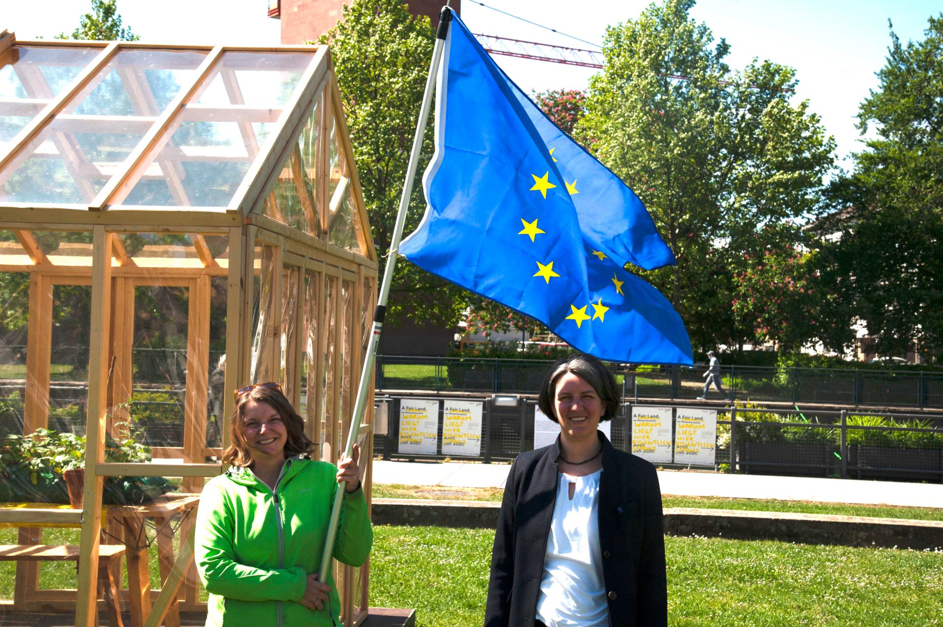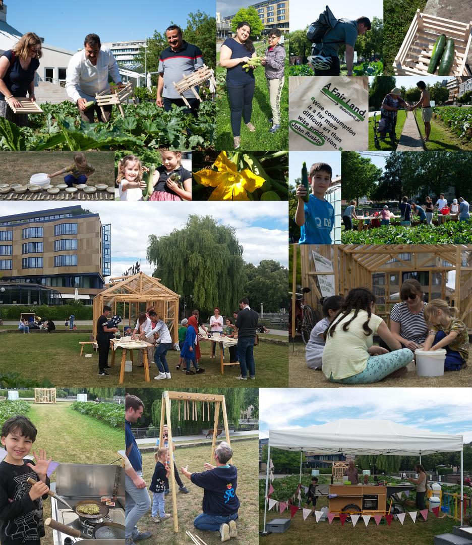 For six months, but especially during the Activity Week, “A Fair Land” was a meeting place for all citizens, regardless of age group and origin. Meeting across social boundaries was the magic word and many actors were involved to create “A Fair Land”: “StudioDrei” professionally led ceramics workshops open to all but especially designed for the integration of refugees, which were specifically invited by the integration management of Pforzheim. The City Youth Ring organized different activities and cooking events with a mobile cooking wheel. The city theater from the neighborhood developed participatory stage puppets for the performance of Beethoven’s opera “Fidelio”. Foodsharing distributed ‘rescued’ food.The “Fair Land” team of students and graduates built stools, took care of the plants, cooked and supervised the harvest. The Bohrain Förderschule and the Gustav-Heinemann-Schule donated their self-made solar stoves. The Carlo Schmid School construct and built the greenhouse for zucchini cultivation with a predominantly migrant, vocational preparation class. The Demeter farm Auenhof contributed zucchini plants and irrigation. The city of Pforzheim supported with benevolent permissions from the Office of Public Order, the Parks Office helps with fertiliser and last but not least the European Commissioner of Pforzheim raised the European flag in the “Fair Land” for Europe Week in May. Many other planned activities fell out due to the pandemic, like the World Children’s Day planned by City Youth Ring; activities of an environmental working group from the Kepler Gymnasium, the open stages of the Kulturhaus Osterfeld, the Fair Trade Days and climate protection week of the Environmental Protection Office, but especially the participatory “Fair Festival”