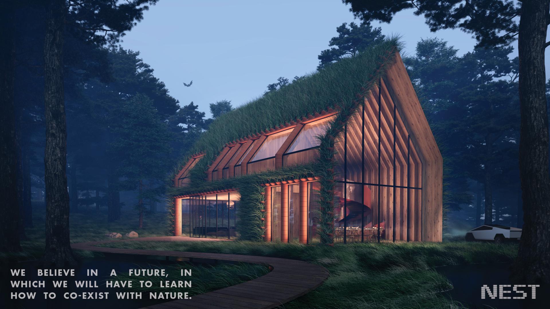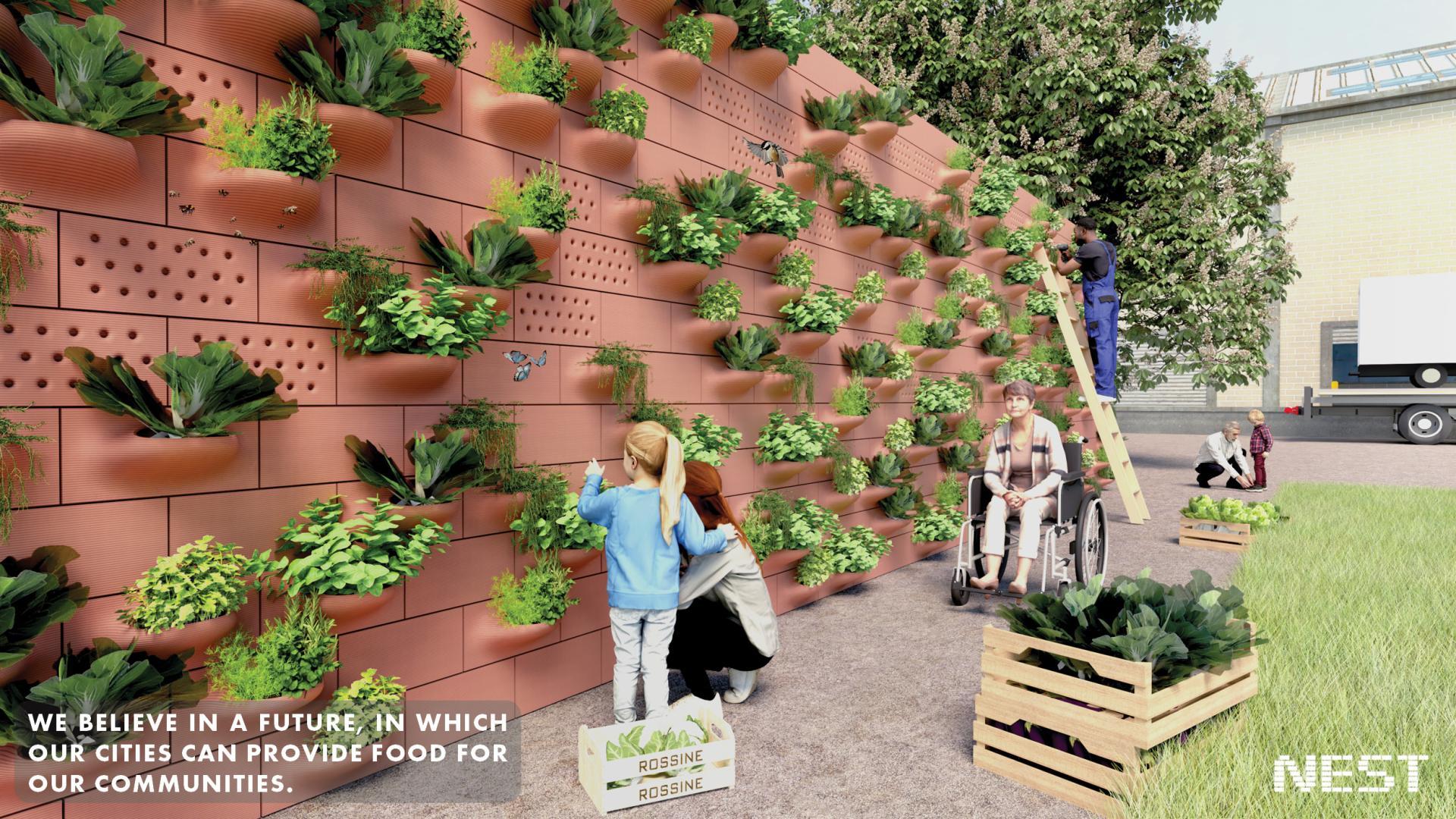 The NEST system combines the qualities of regular ventilated façade system tiles with the green, living wall concept into one coherent and designed element. The panels are produced via Additive Manufacturing Technique which allows for greater form flexibility, easy customization, quick prototyping and nearly zero waste production. The commonly used, locally sourced, clean material is being used in an advanced way, opening endless form possibilities whilst reducing the carbon footprint of the building.