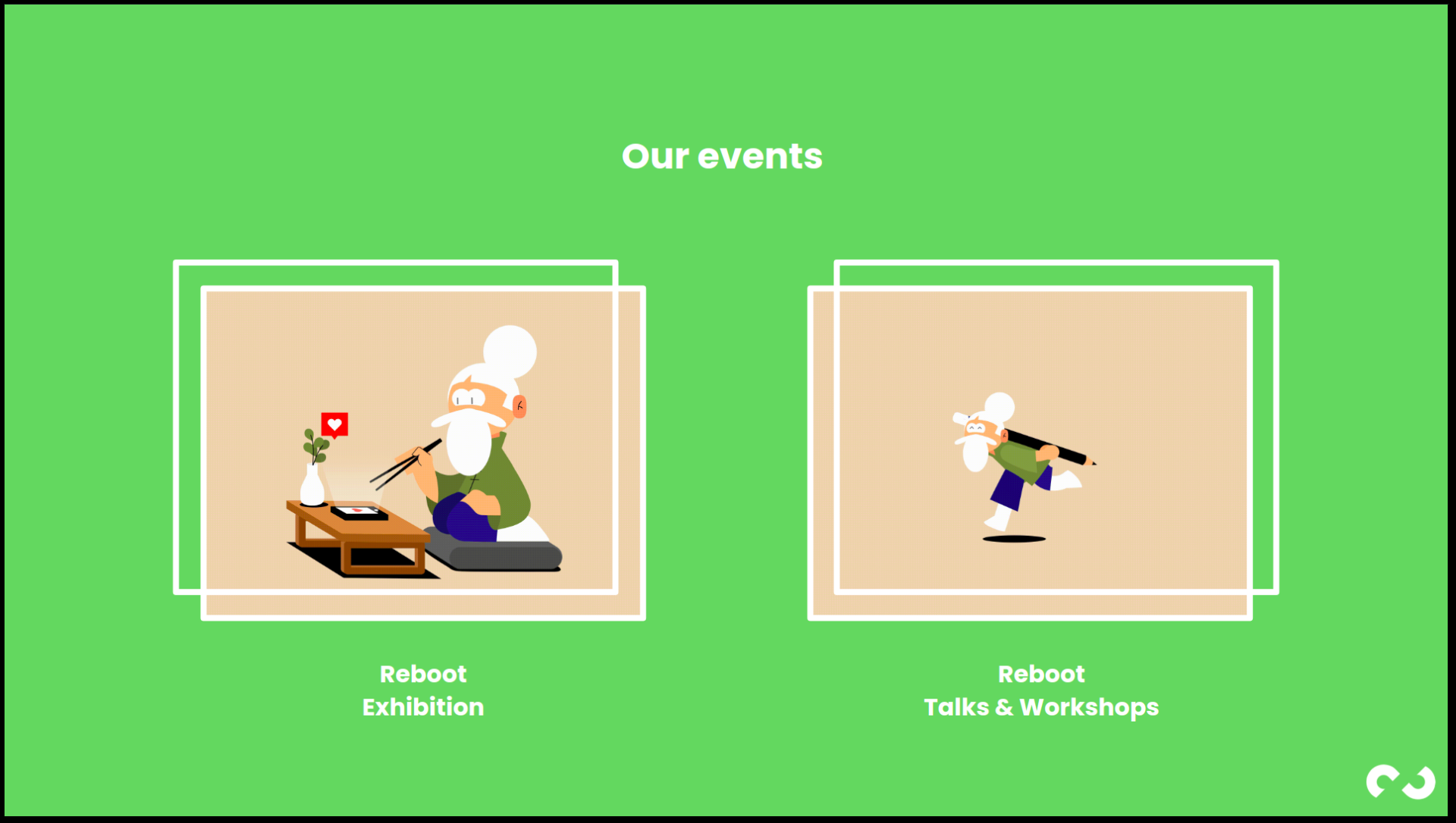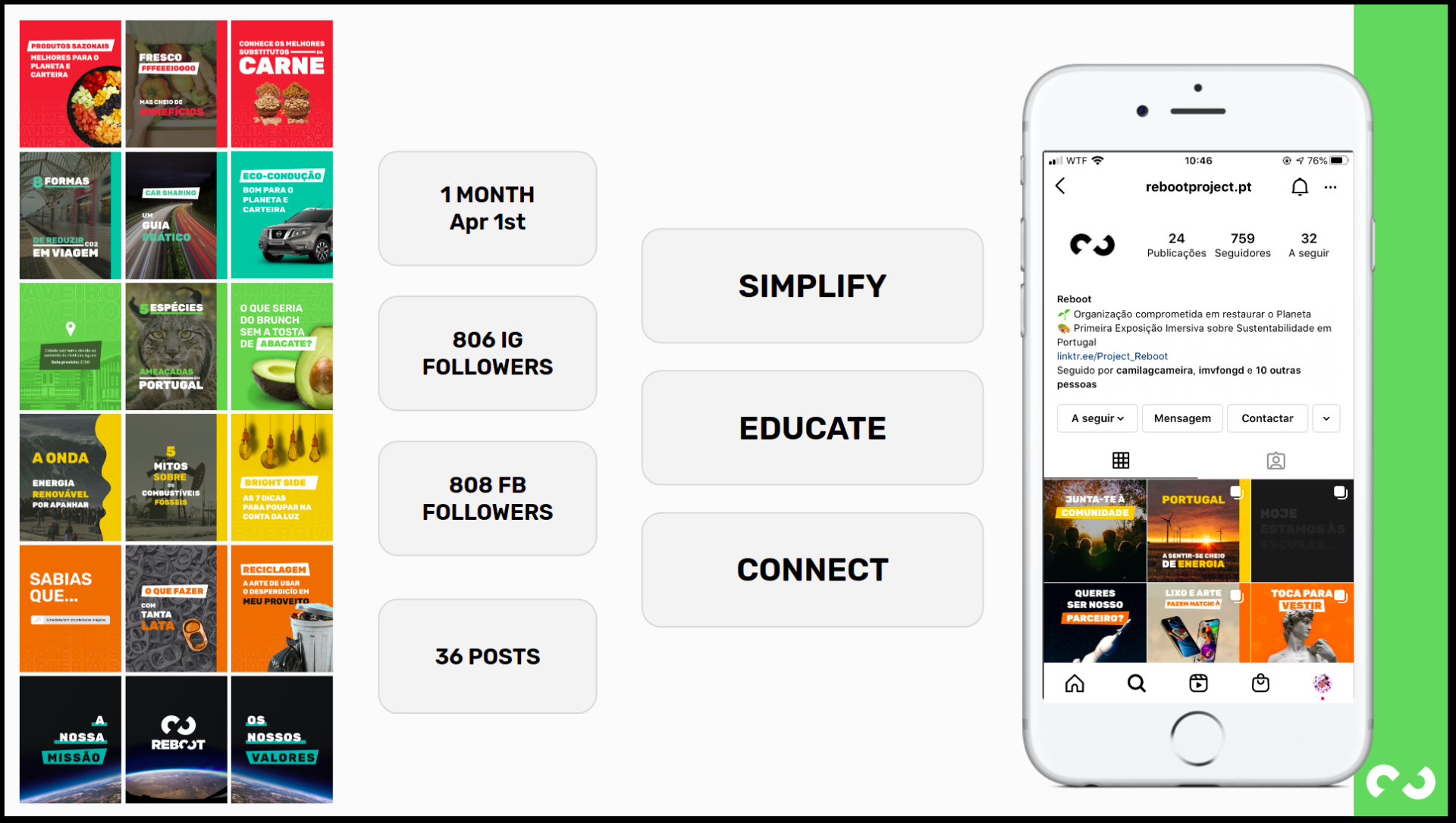 Reboot has it's innovative profile from the fact that we use our communication in a sense of education for those who are non-adepts of sustainability, trying to reach them with simple and concrete call to action images.