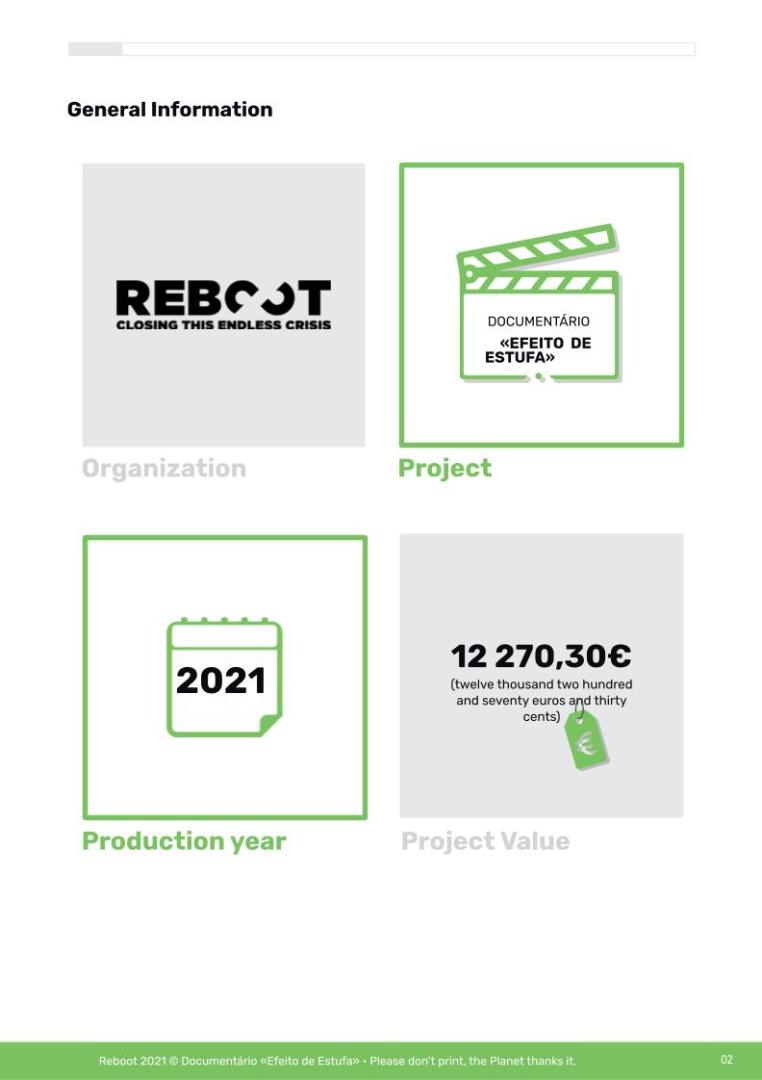 Reboot is a Lisbon-based non-profit organization founded by young volunteers between the ages of 21 and 29 on October 29, 2020, whose main mission is to create an united community aimed at restoring a prosperous planet, as well as combating the climate crisis. Always respecting the individual rhythm of each one, it encourages the indifferent - those whose take no initiative in the face of the climate crisis, whether due to inertia or lack of knowledge - to become an active part in the commitment to adopt sustainable practices for the planet. Its values are Commitment, Inclusion, Transparency and Sustainability.
