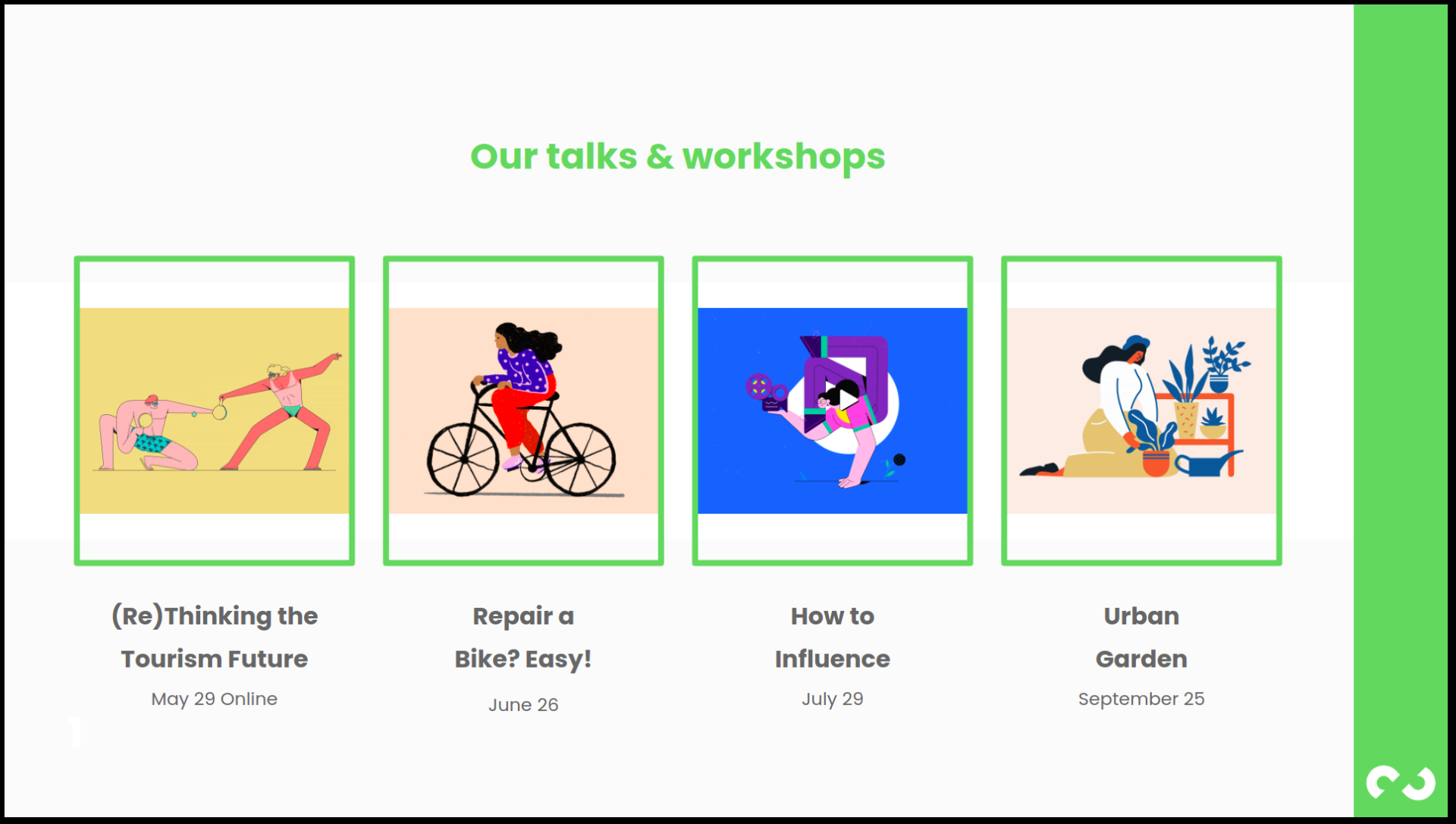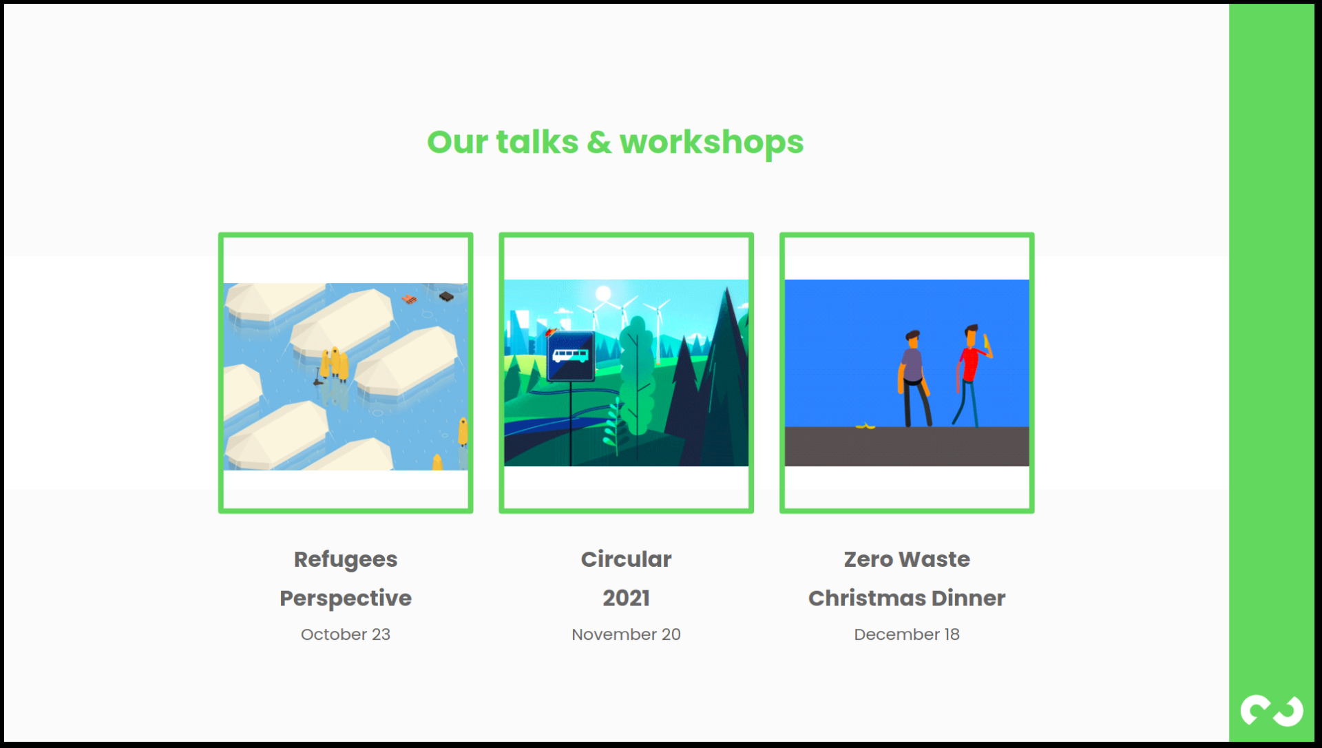 - Create a newtork of businesses, projects, ideas and people with our Slack Community to, above all else, inform and promote circularity between the participants.