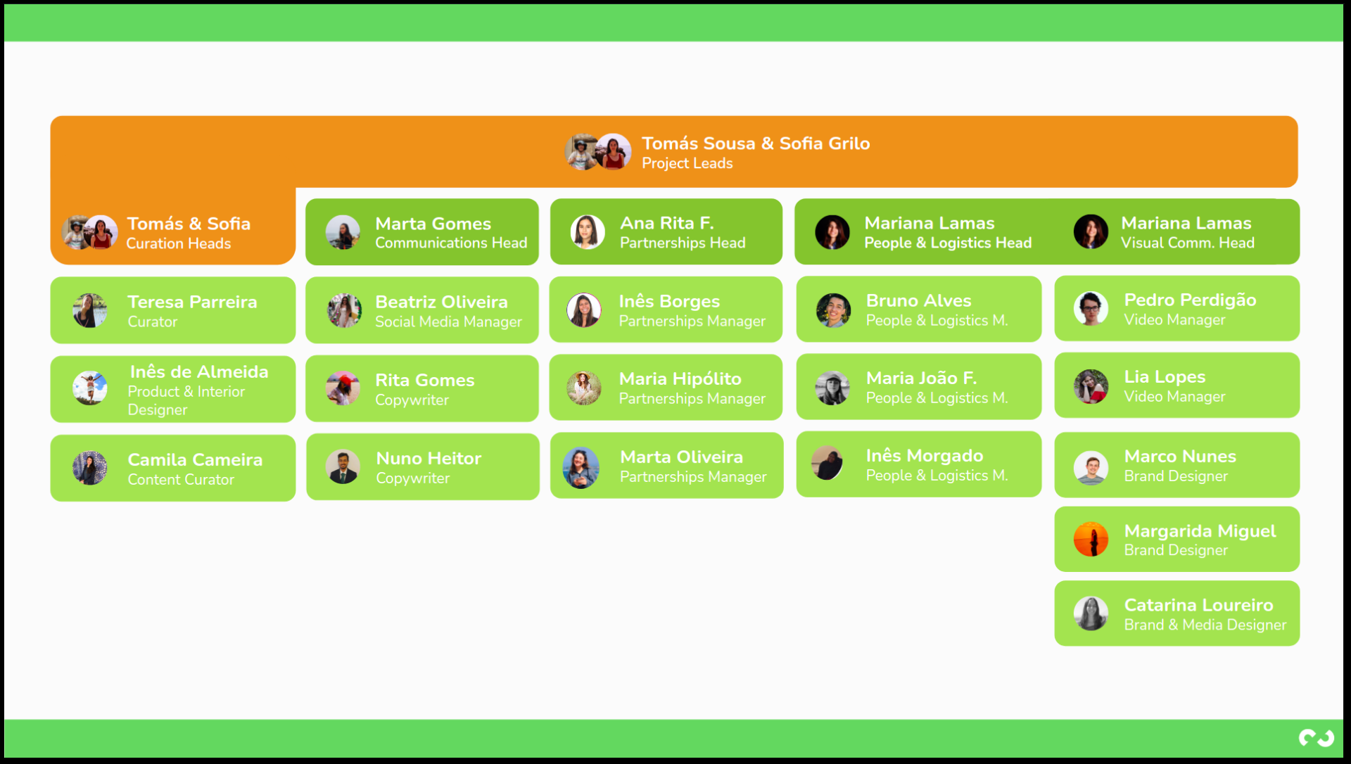 It should be noted that even though the organization is young, it also has the support of a network of Advisors, each with different areas of expertise (from sustainability to innovation, immersive user experience to curatorship and art), who believe in our project and support us in within the respective area of operation. Two of our advisors are an active voice on the theme: a young activist, spokesperson for the Student Climate Strike Movement, among other movements, with more than 5000 followers only on Instagram - Bianca de Castro - and still - Catarina Barreiros - the most relevant Portuguese influencer on the theme of sustainability, with +75 thousand followers only on instagram as well.