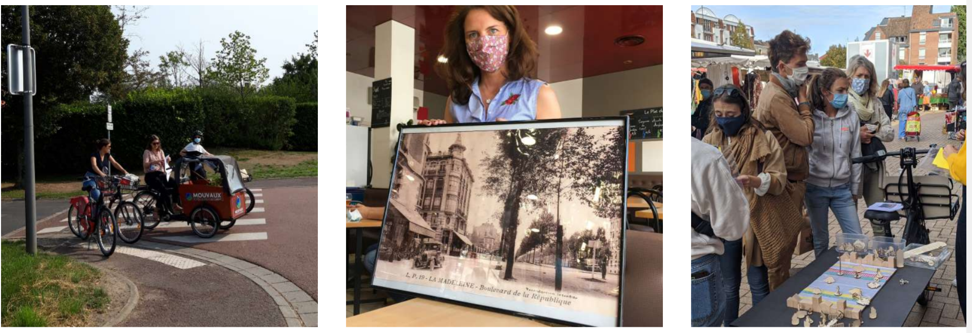 Walks were organized in the neighborhood, principally with a freight tricycle equipped with a miniature model of the Grand boulevard that participants could modify according to their ideas. Specific meetings have also been organized with residents, passers-by, restaurant and bar owners, companies, in order to understand each other’s expectations and points of view. Restaurant and bar owners are by the way actively involved in the project through the installation of terraces, food trucks, etc. instead of parking spaces.