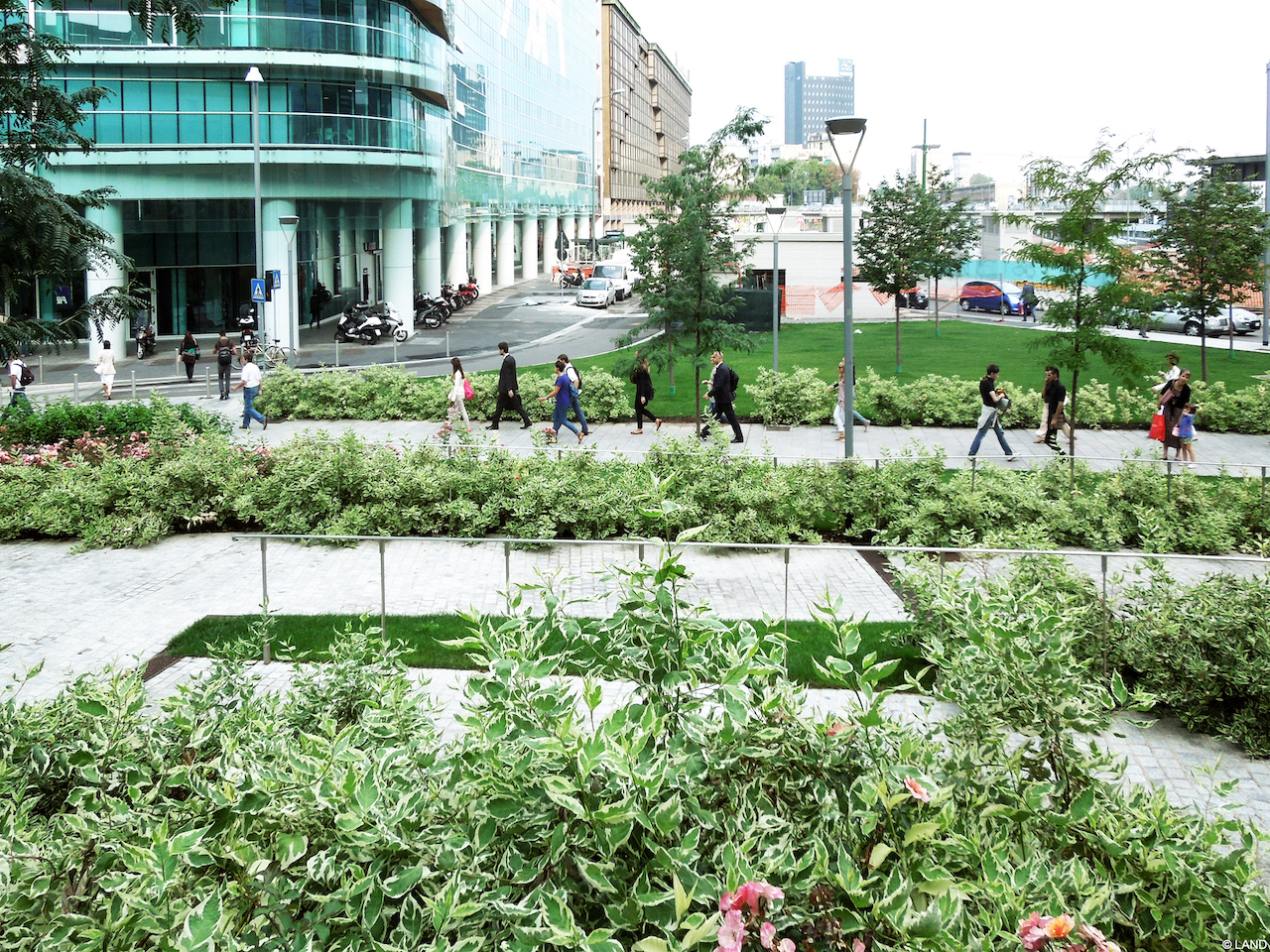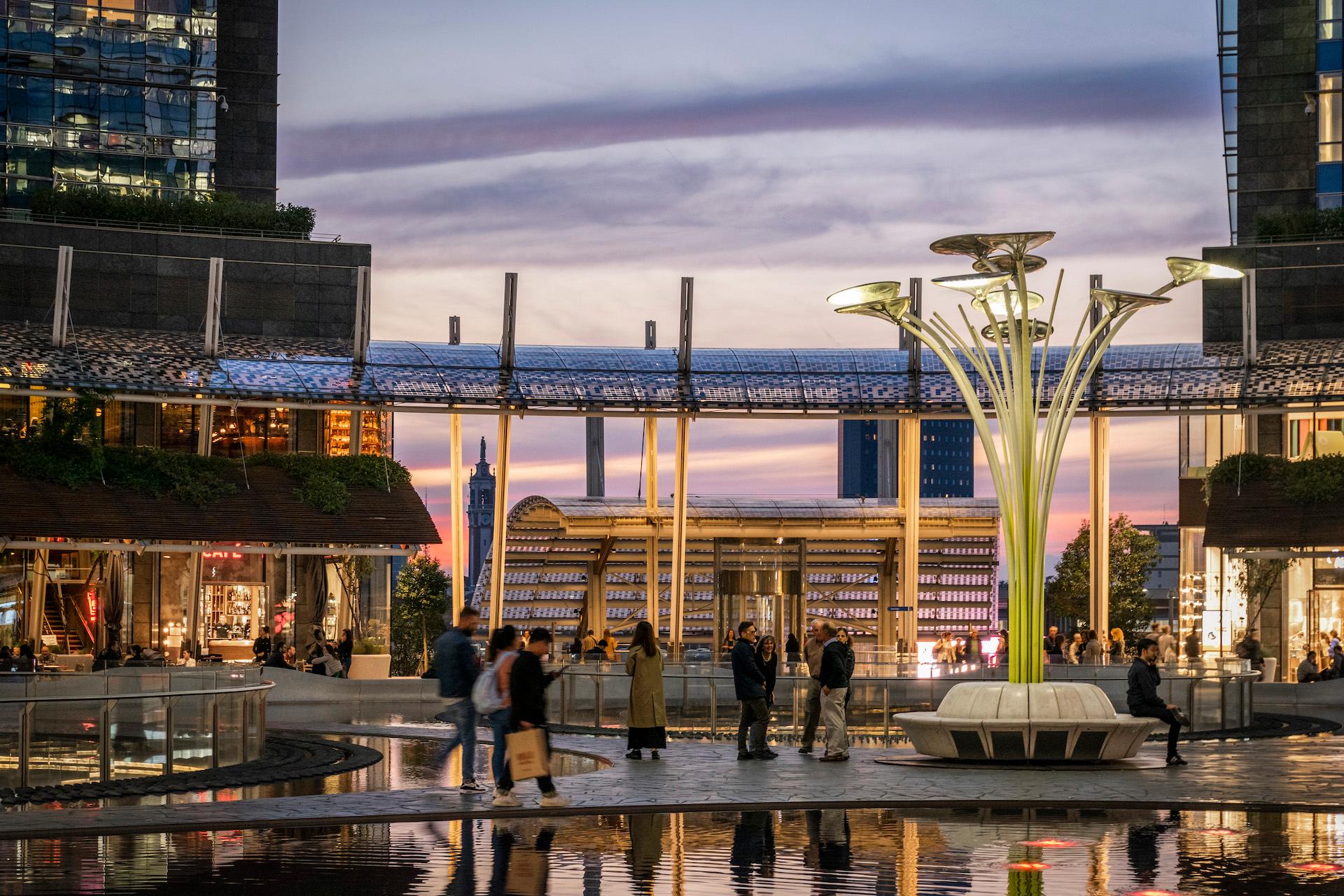 The public spaces of Porta Nuova gives appealing and accessible passage to its surrounding neighbours and to the many people that work around the transport hub Garibaldi station. The social and economic differences around the area equilibrated over time as the project development started in 2005. The Gae Aulenti Square - conceptualised by EDAW as Lead consulting, designed and built by LAND Italia - was finalised in 2012 and solved the challenge to design a public space in the very middle of a recently finished, commercial place, surrounded by some of the highest buildings of Italy.